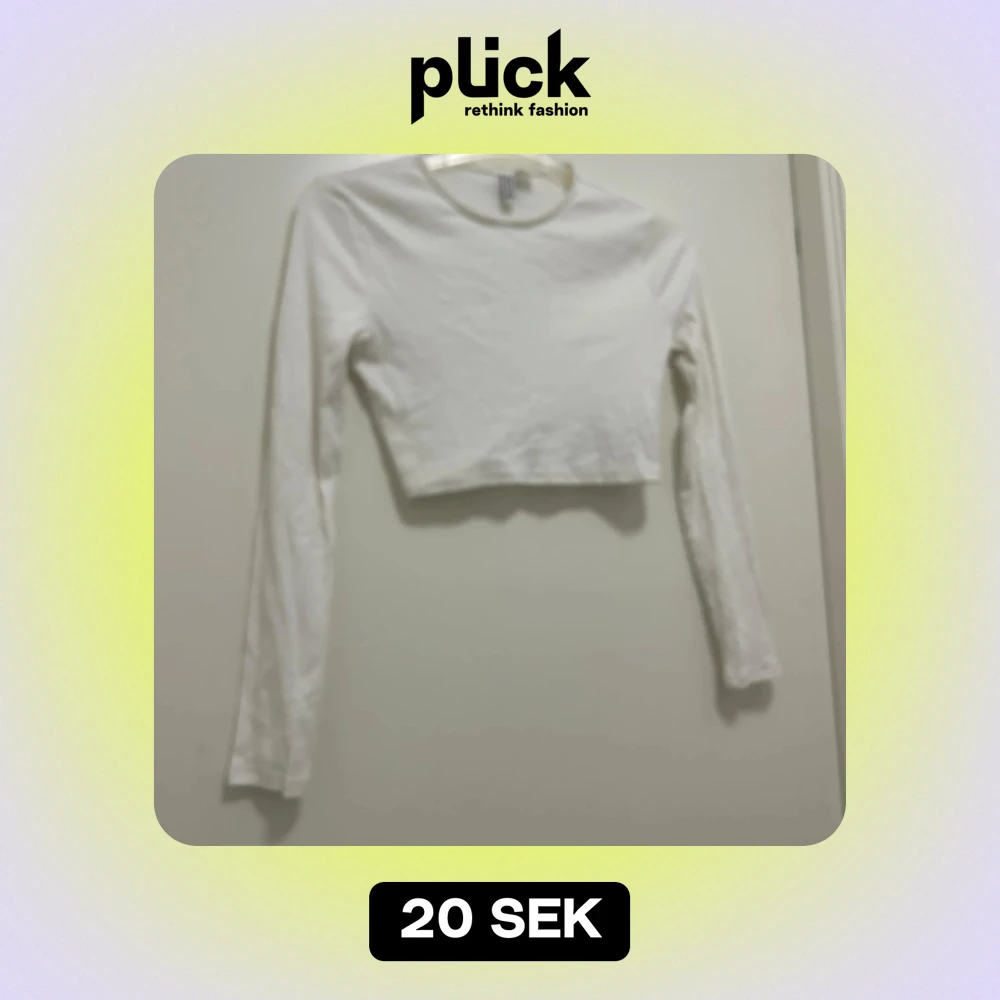 En vit, långärmad croptop som är tunt ribbad. Tröjan i sig är mycket skön men är för kort för min smak. Passar bra till allt!