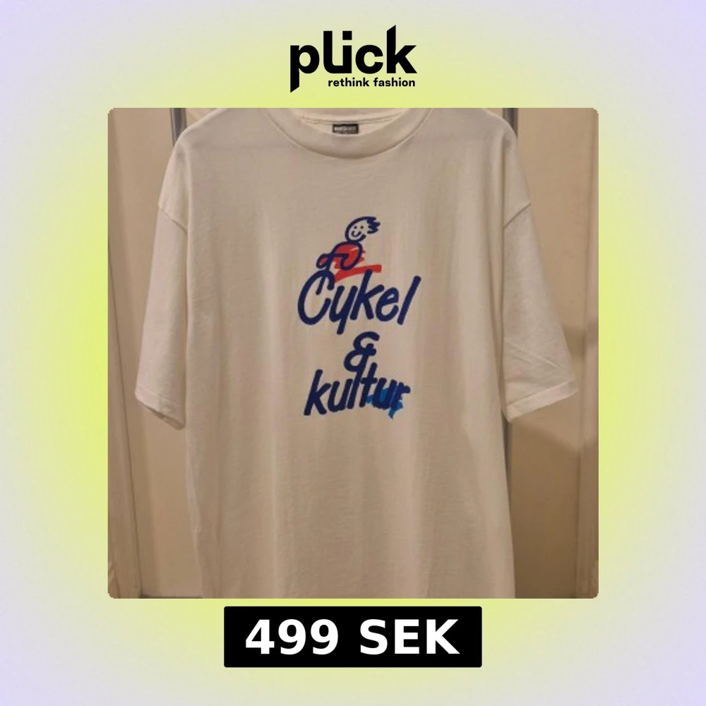 Säljer en vit t-shirt från Harley-Davidson med sällsynt tryck 'Cykel & kultur' i blått och rött på framsidan. På ena ärmen finns ett tryck med texten 'Region Rejser' och ett glas. T-shirten är gjord i mjuk bomull och har en klassisk, loose passform med korta ärmar. Single stitch och Made in USA.