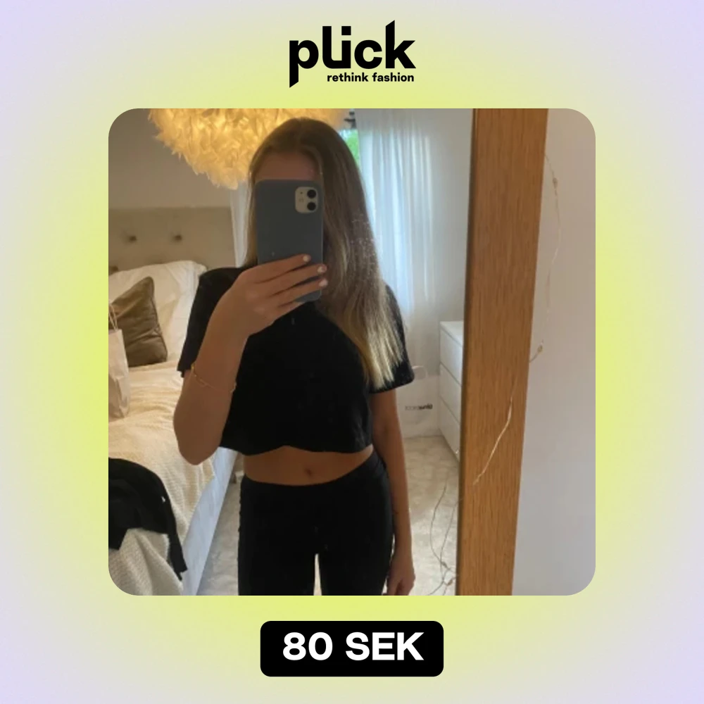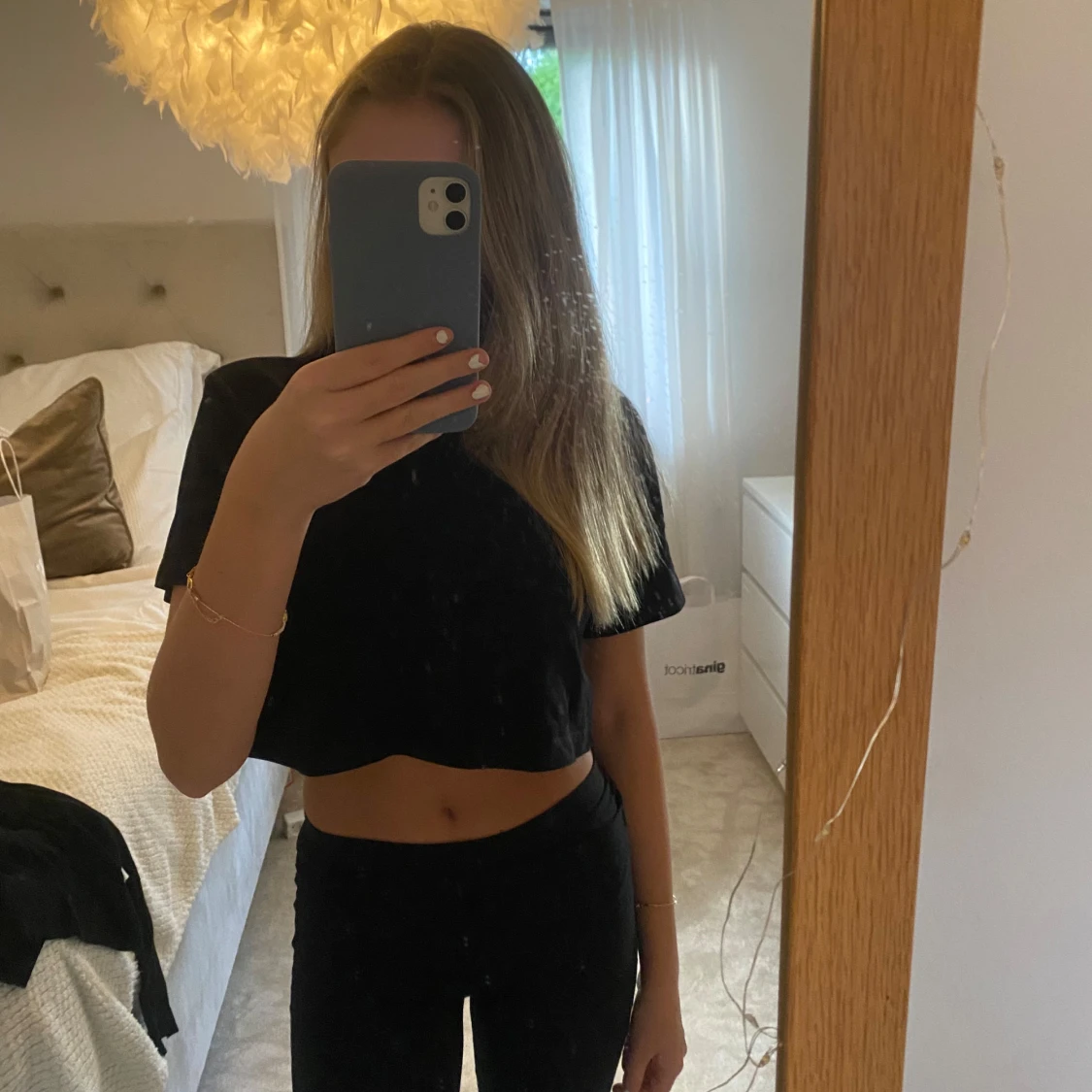 En jättefin vanlig svart T-shirt som är kort i modellen, den är i superbra skick och knappt använd, säljer för att den inte kommer till användning. OBS pris kan diskuteras💕