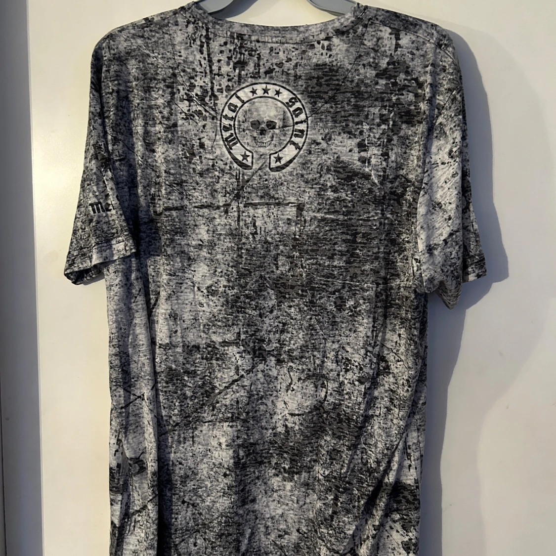 T-shirt med Metsl saints. Storlek XXL. Helt ny. Svarta små nitar på,