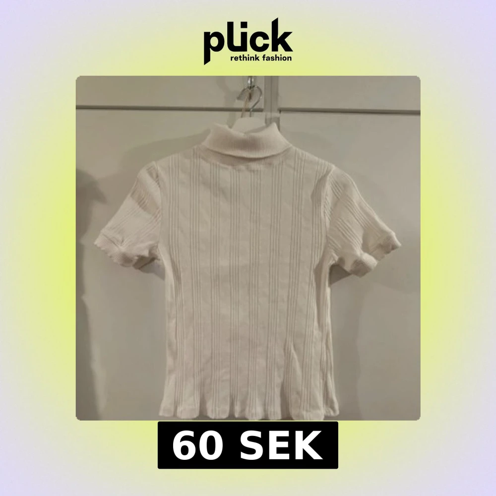 Här är en vit ribbad top med krage kToppen har en hög krage som sitter snyggt på kroppen. Perfekt at styla med jeans eller kjol. Säljer denna för att den inte kommer till användning man betalar även för frakten sen kan man skriva till mig om man har några frågor