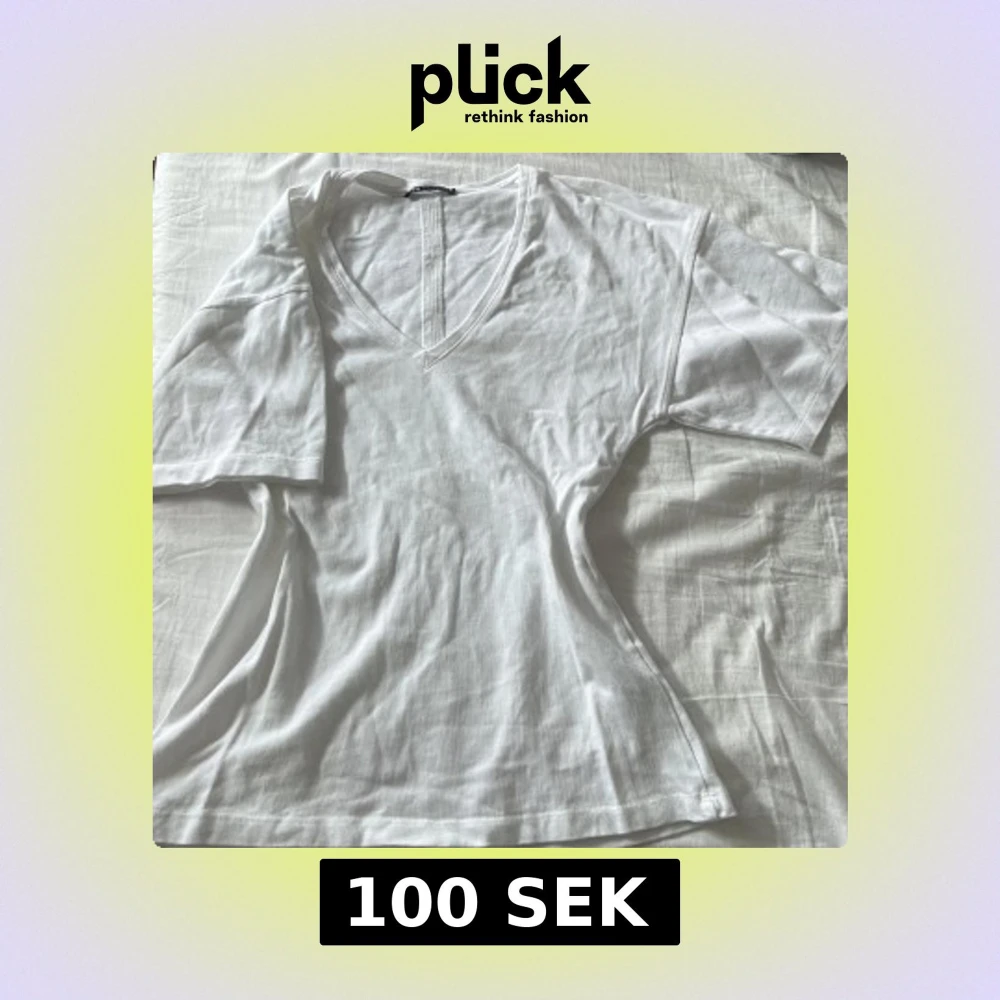 Vit t-shirt från Zara med v-ringning och korta ärmar. Modellen är lite loose och gjord i mjuk bomull, perfekt för en chill och enkel stil. Passar dig som gillar basic men ändå vill ha något snyggt och bekvämt.