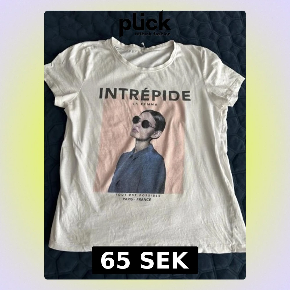 Vit t-shirt från ONLY med coolt grafiskt tryck och texten 'INTRÉPIDE LA FEMME' på framsidan. Klassisk rund hals och korta ärmar. Perfekt för en avslappnad och trendig look.