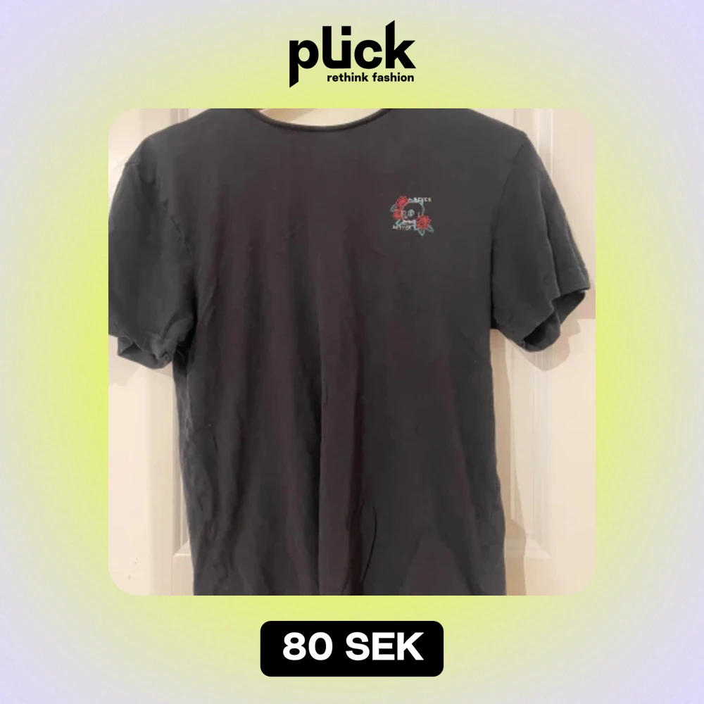 Cool svart t-shirt med dödskalle och rosor. Inga defekter