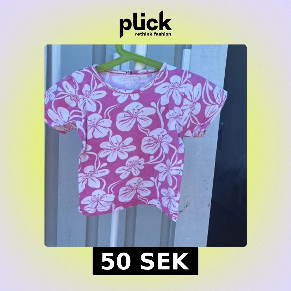 Snygg rosa t-shirt med stora vita blommor över hela tyget. T-shirten har rund halsringning och korta ärmar, perfekt för varma dagar. Skön och mjuk känsla, passar dig som gillar färg och mönster.