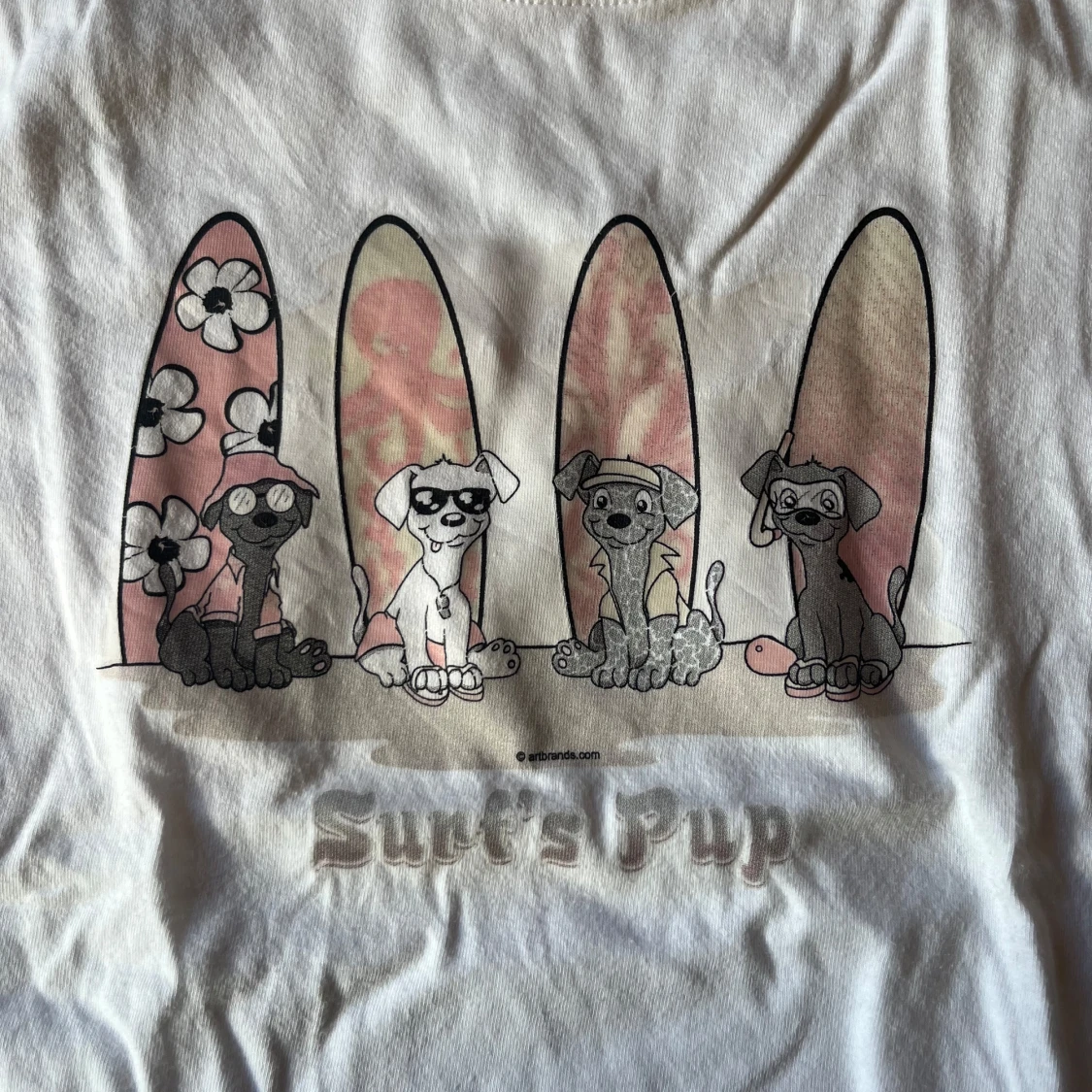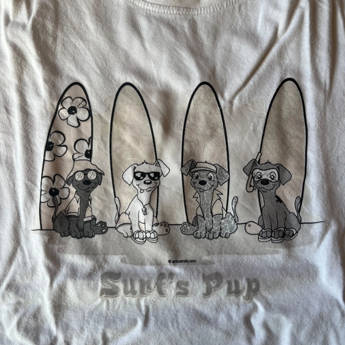 Vit T-shirt där trycket färjas när det kommer i kontakt med solljus
