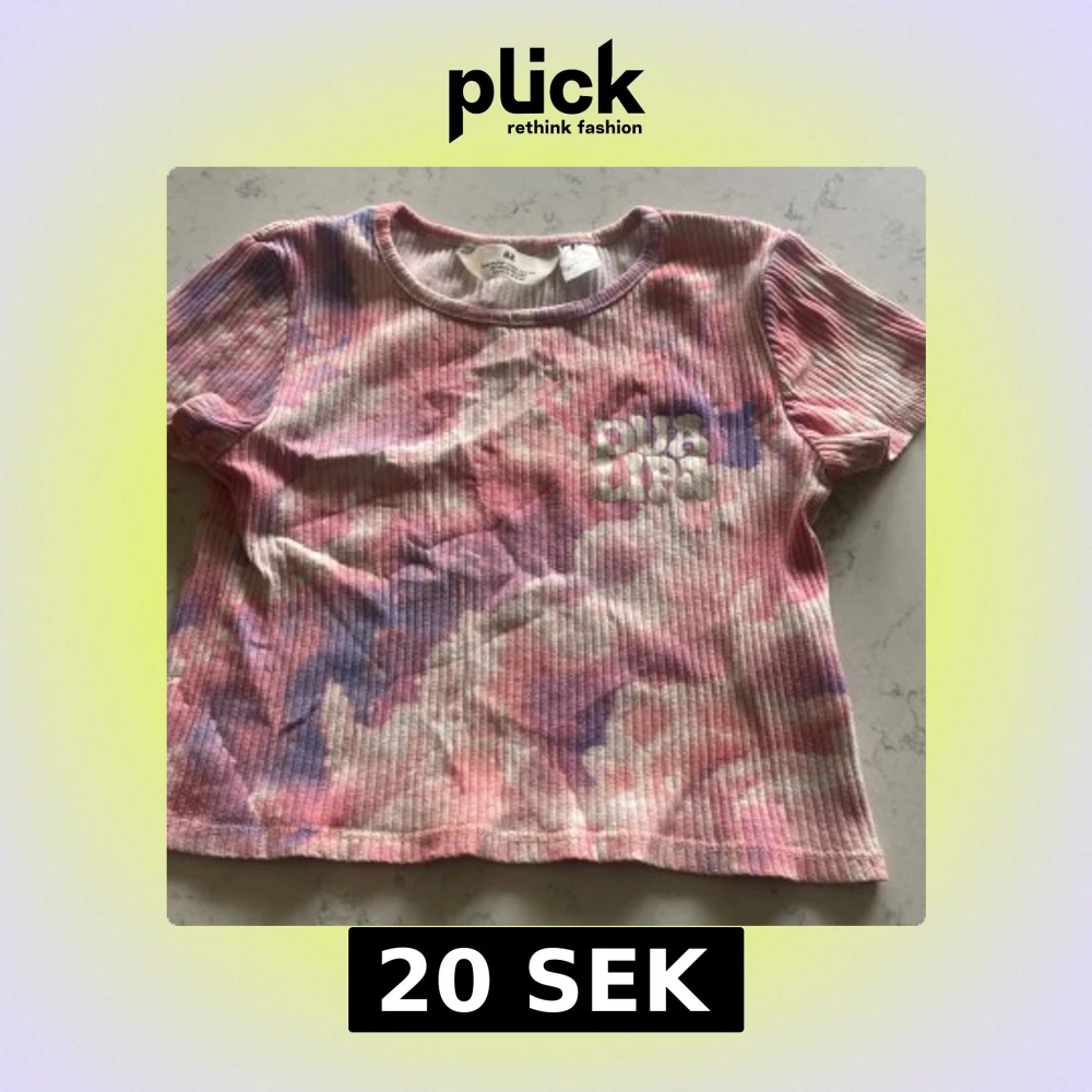 Superfin ribbad topp från H&M x Dua Lipa med coolt batikmönster i rosa, lila och vitt. Kortärmad och croppad modell med tryckt Dua Lipa-logga framtill. Perfekt för dig som vill sticka ut med färg och mönster! Storlek 134-140, 20 sek + frakt