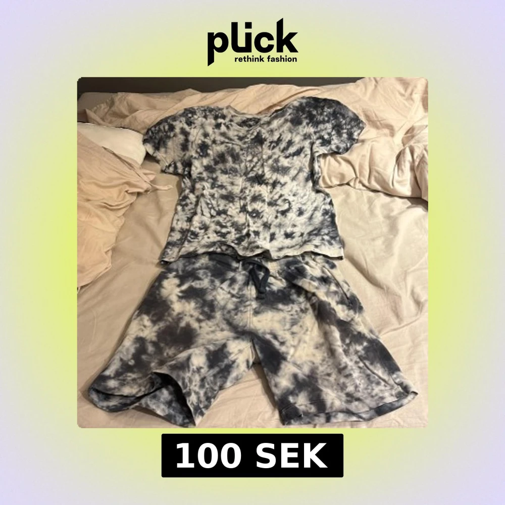 Säljer en cool svartvit batikmönstrad t-shirt med matchande shorts. T-shirten är kortärmad och setet är perfekt för en avslappnad stil. Materialet ser mjukt och bekvämt ut, idealiskt för varma dagar. Är samma storlek på T-shirten och shortsen.