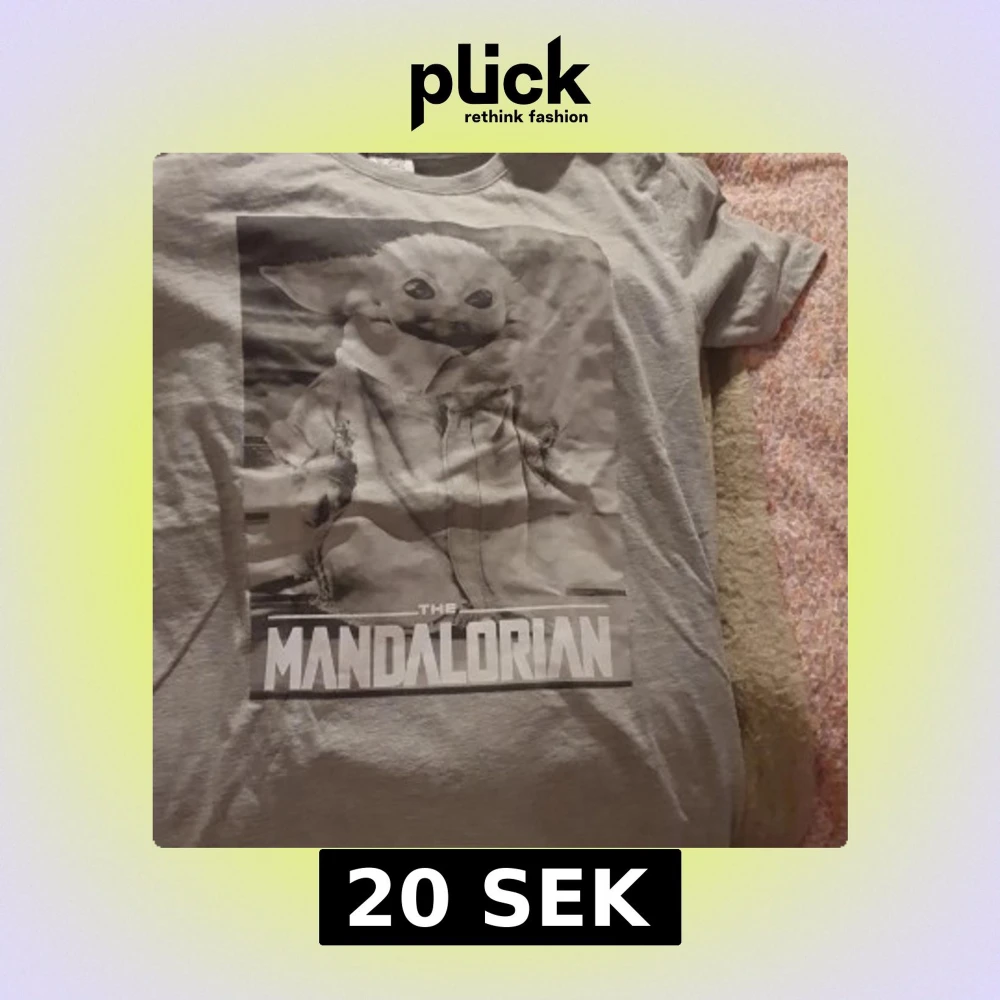 Snygg grå t-shirt med stort svartvitt tryck av Baby Yoda från The Mandalorian på framsidan. Klassisk rund hals och korta ärmar. Perfekt för alla Star Wars-fans som vill sticka ut med en cool och bekväm tee i bomull.