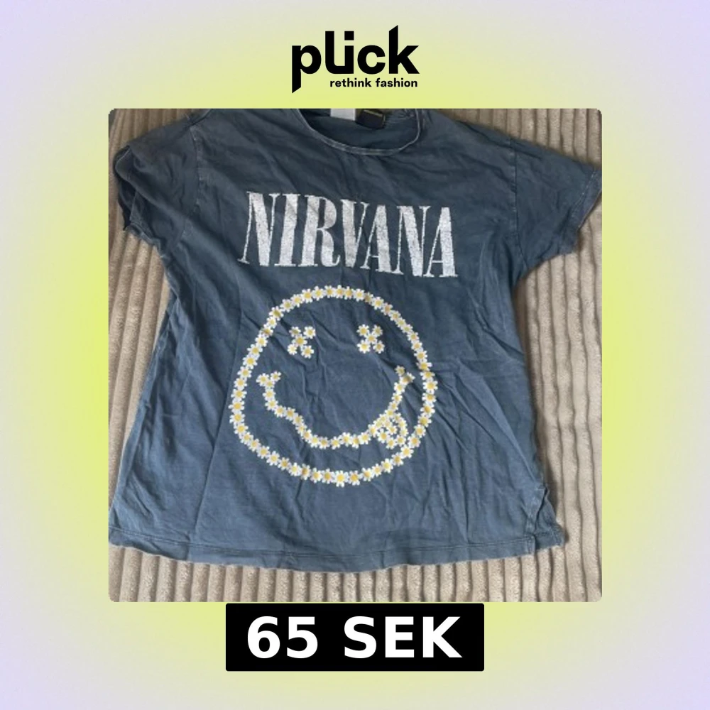 Snygg t-shirt med Nirvana-tryck i vitt och en stor smiley gjord av små blommor på framsidan. Klassisk rund hals och korta ärmar. Perfekt för dig som gillar bandtröjor och vill sticka ut med en cool, avslappnad stil.