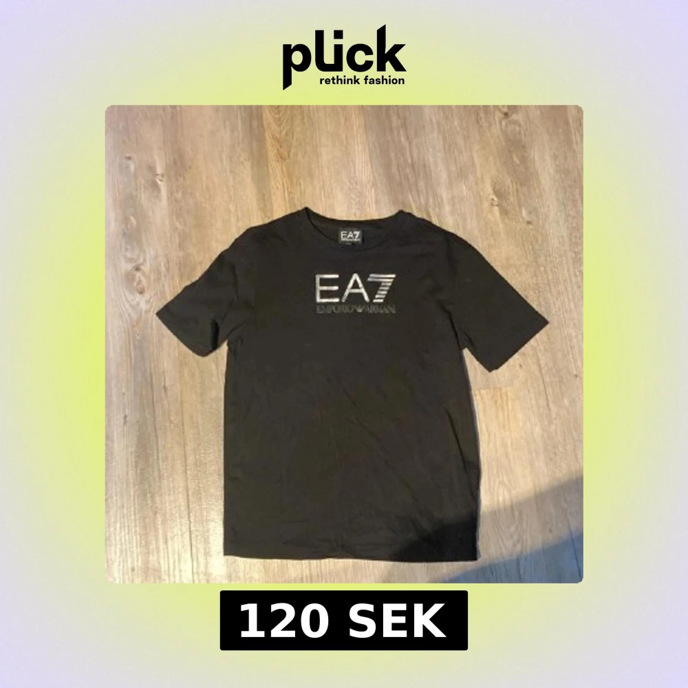 Snygg svart t-shirt från Emporio Armani med EA7-logga på bröstet. Perfekt för en stilren look. Tillverkad i mjukt material för extra komfort. Passar utmärkt till både jeans och shorts.