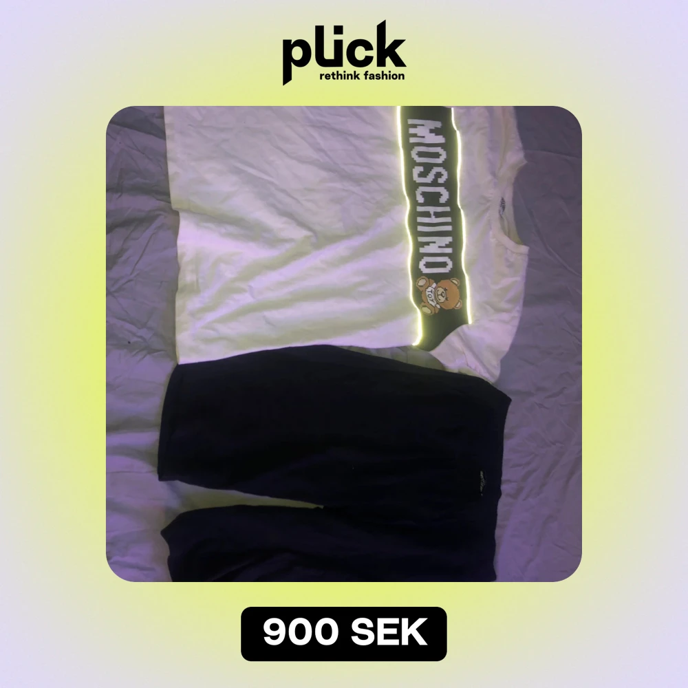 Säljer en cool vit t-shirt från Moschino Teen med ett stort Moschino-tryck och en söt nalle på framsidan. Perfekt för en avslappnad stil och passar bra till både jeans och shorts. T-shirten är i bra skick och redo för nya äventyr!
