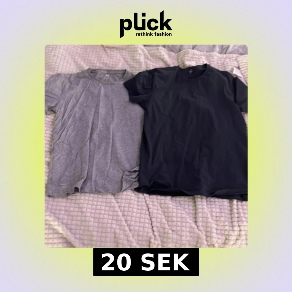 Två stilrena t-shirts från 157 i storlek L. En är ljusgrå och den andra är svart, båda med klassisk rund hals och kort ärm. Den grå är i 90% bomull och 10% viskos, den svarta är en premium basic-modell. Perfekta till jeans eller shorts. 10 kr st eller båda för 20 kr