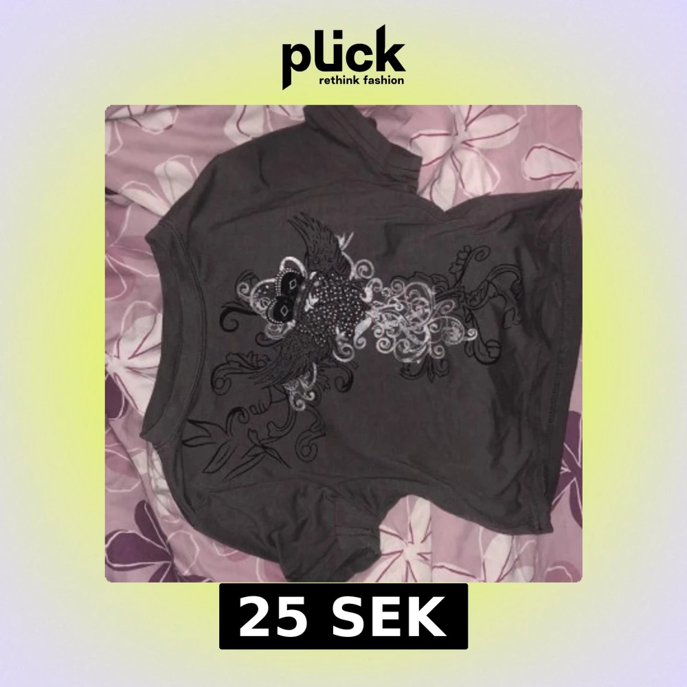 Säljer en grå t-shirt med ett detaljerat tryck av en uggla och blommor på framsidan. T-shirten har korta ärmar och en rund halsringning. Perfekt för en avslappnad stil.