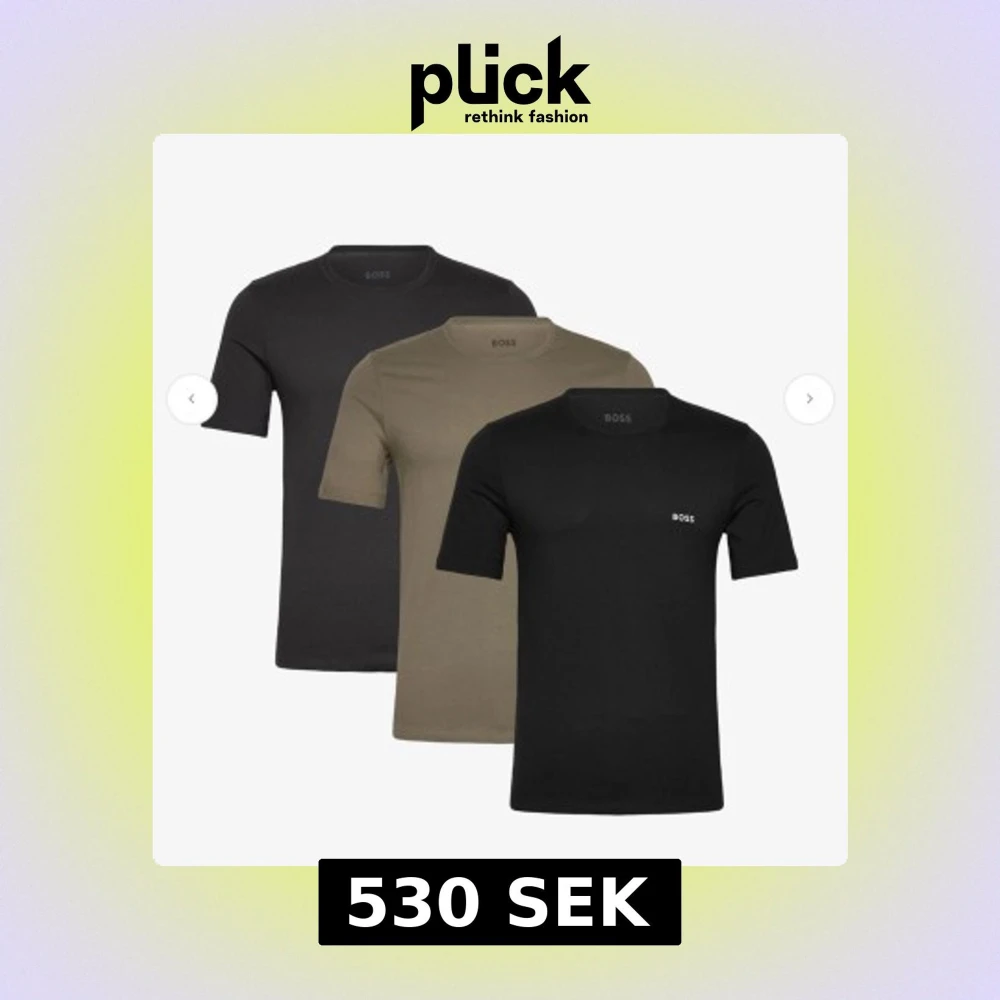 Säljer ett 3-pack stilrena t-shirts från BOSS i svart, mörkgrå och beige. Alla har rund hals, korta ärmar och diskret BOSS-logga på bröstet. Perfekt passform och mjukt bomullsmaterial som känns skönt mot huden.