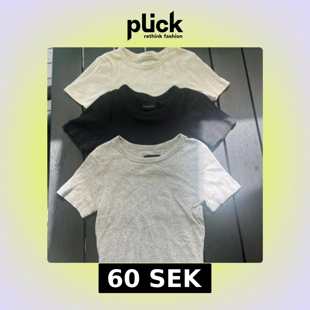 Finns enskilda T-shirtar på min sida om man bara vill köpa 1. Säljer tre ribbade t-shirts från Even&Odd i färgerna vit, svart och ljusgrå. Alla har rund halsringning och korta ärmar. Perfekta basplagg med snygg passform och mjukt material som känns skönt mot huden.