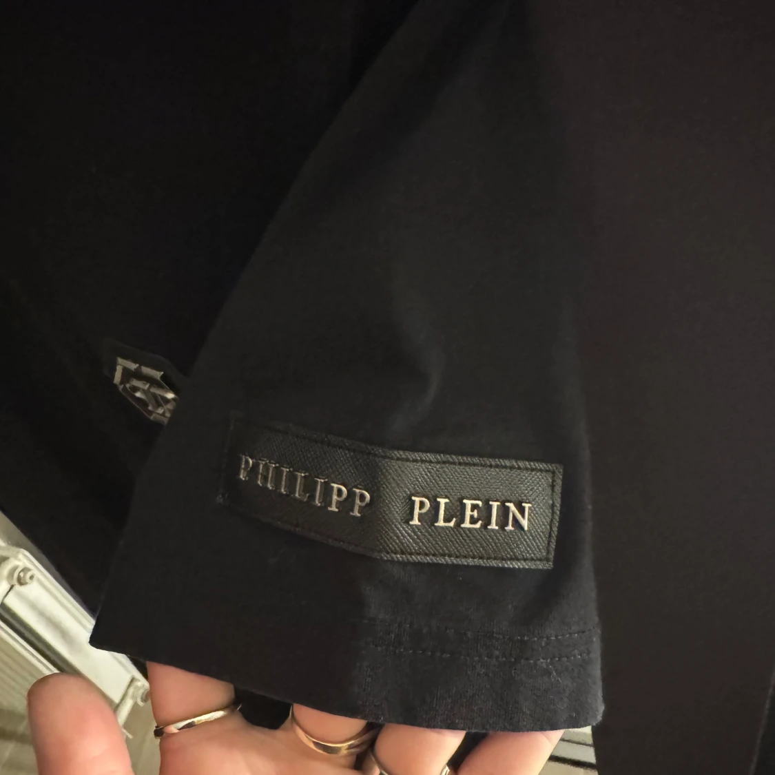 Snygg svart t-shirt från Philipp Plein med ett coolt emblem på bröstet. Den har korta ärmar och en klassisk rund halsringning. Perfekt för en stilren look.