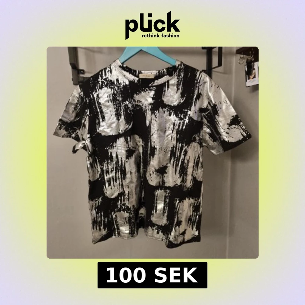Cool svart t-shirt med unikt silvrigt abstrakt mönster. T-shirten har rund hals och korta ärmar, perfekt för dig som vill sticka ut med en modern och edgy stil.