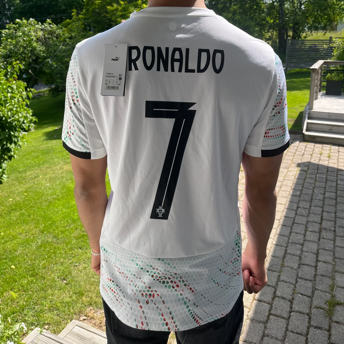 Portugal bortatröja från Unisport med Ronaldo tryck. Helt oanvänd, kunde ej returnera pga. tryck. Säljer för att jag köpte 2 olika storlekar till min pojkvän. Köpt för 1500kr, har kvitto från Unisport digitalt.