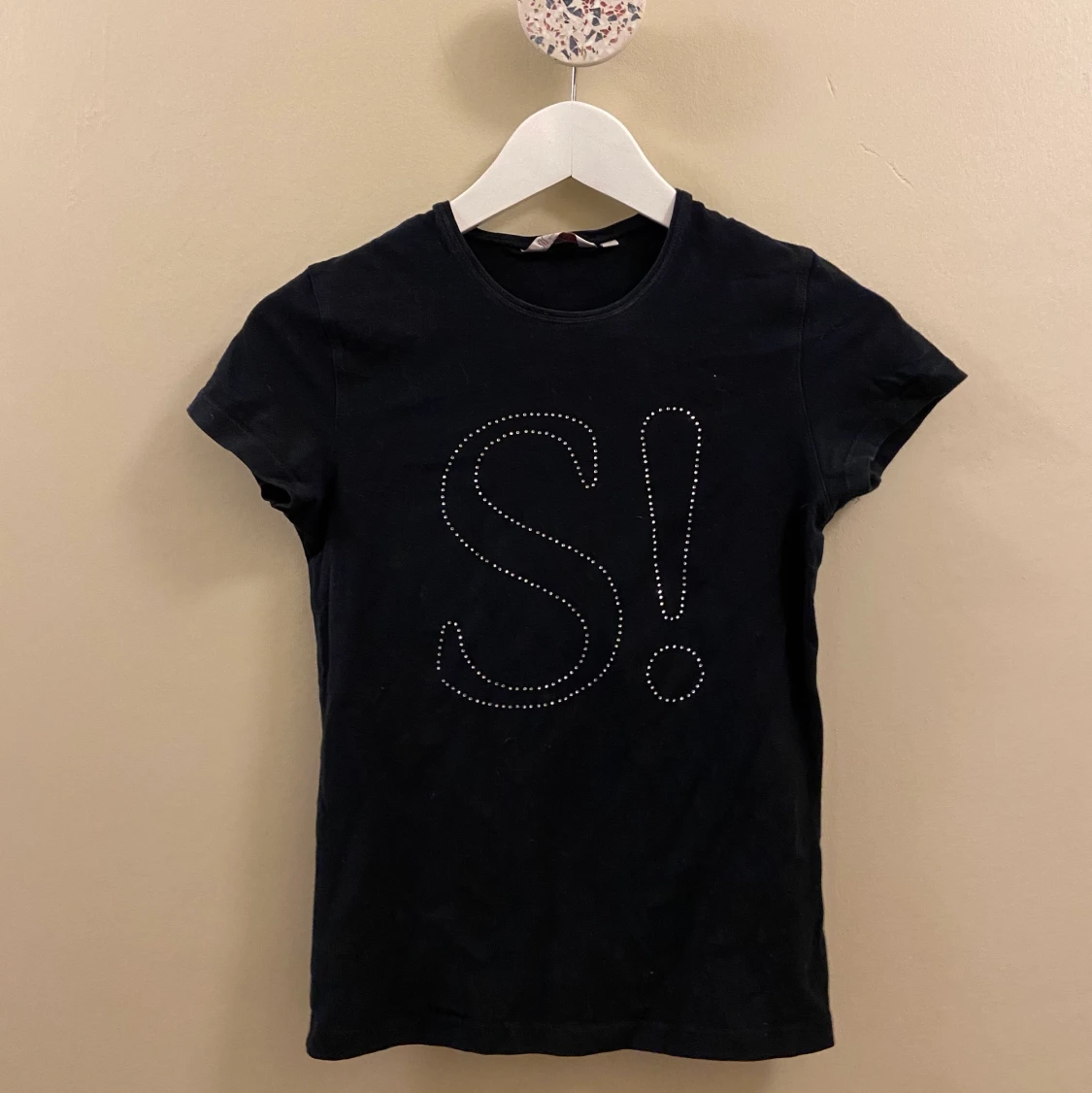 En snygg T-shirt. Jag skulle tycka att det va skitcoolt att ha denna tröja om mitt namn började på S. Men tyvärr så gör det ju inte det🥲. Den är i superbra skick och inga stenar är borta.💞