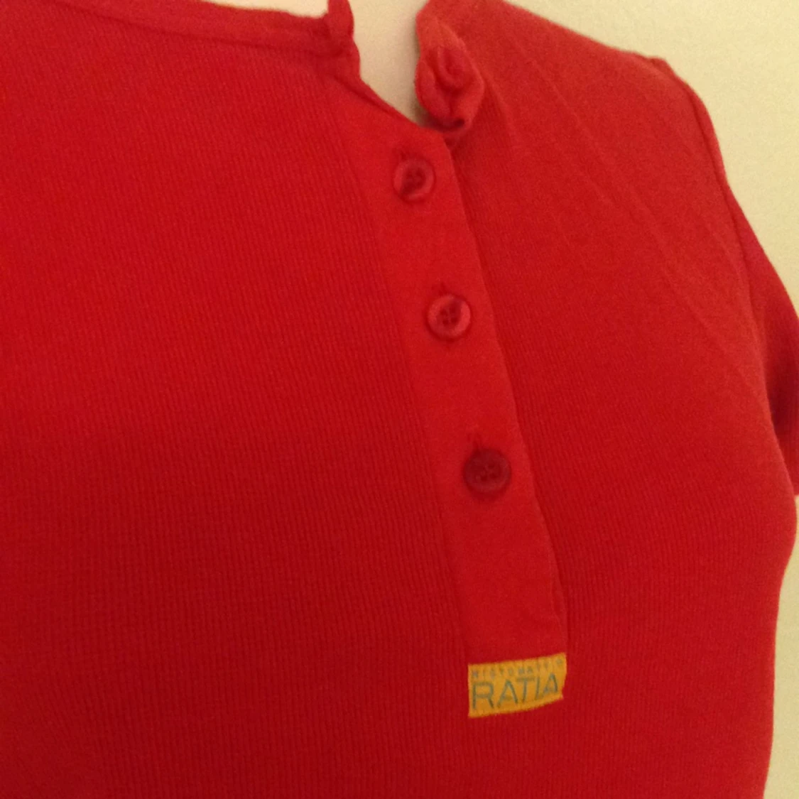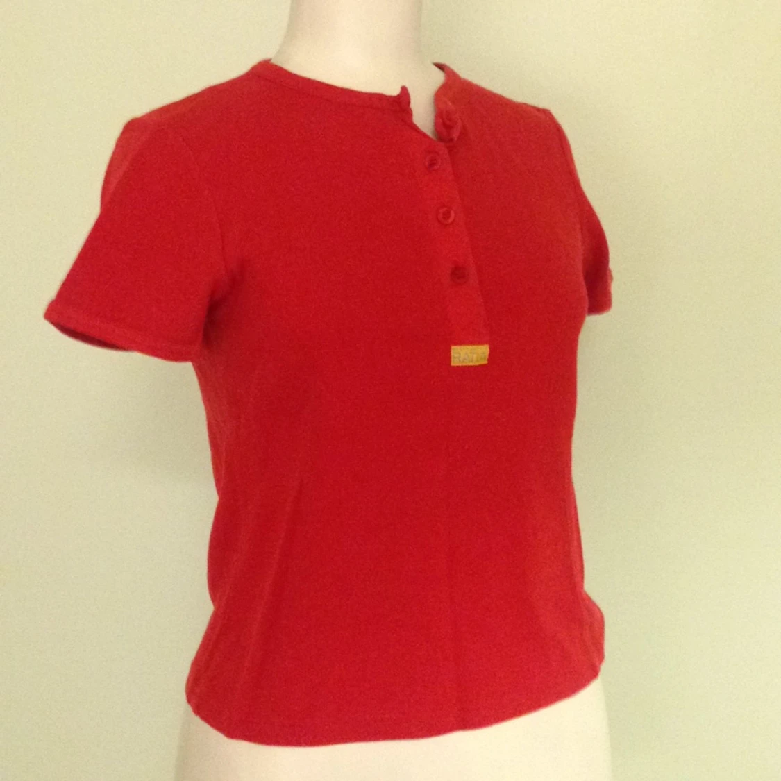 Röd t-shirt i våfflad bomull, 90-tal. Kan skickas.