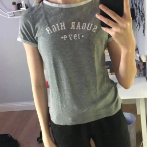 Grå t-shirt med trycket ’sugar high 1974’. Storlek 158/164. Har använt några gånger men känns som ny. Jätteskönt material! Möts upp i Sthlm eller fraktar(köparen står för frakt)✨