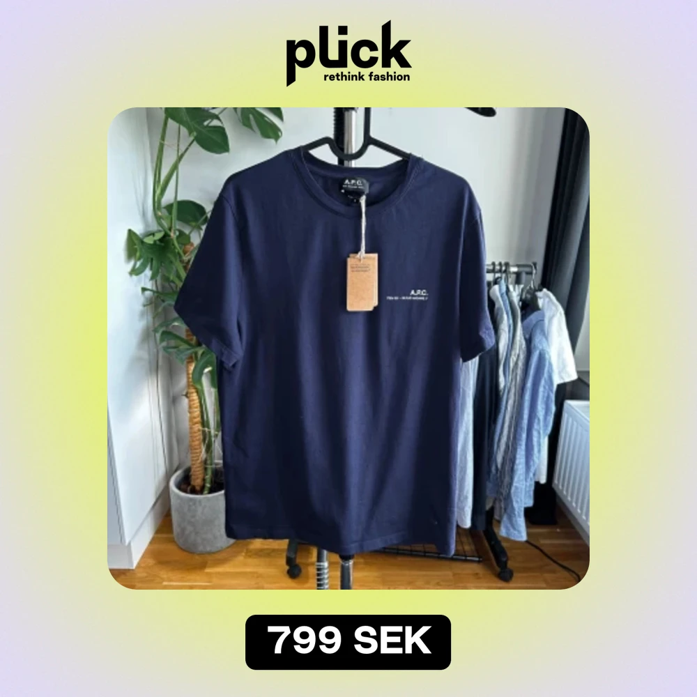 Mörkblå Tshirt ifrån APC, köpt i NYC butiken. Sprillans (tags sitter kvar), digitalt kvitto och påse kan medfölja vid förfrågan. Nypris $130/1300kr