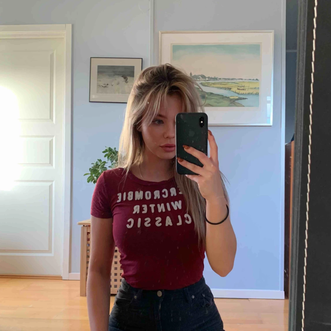 Tight t-shirt från abercrombie & fitch Den är i en fin vinröd färg, jättebra skick Möts i malmö annars fraktas för 35 kr extra