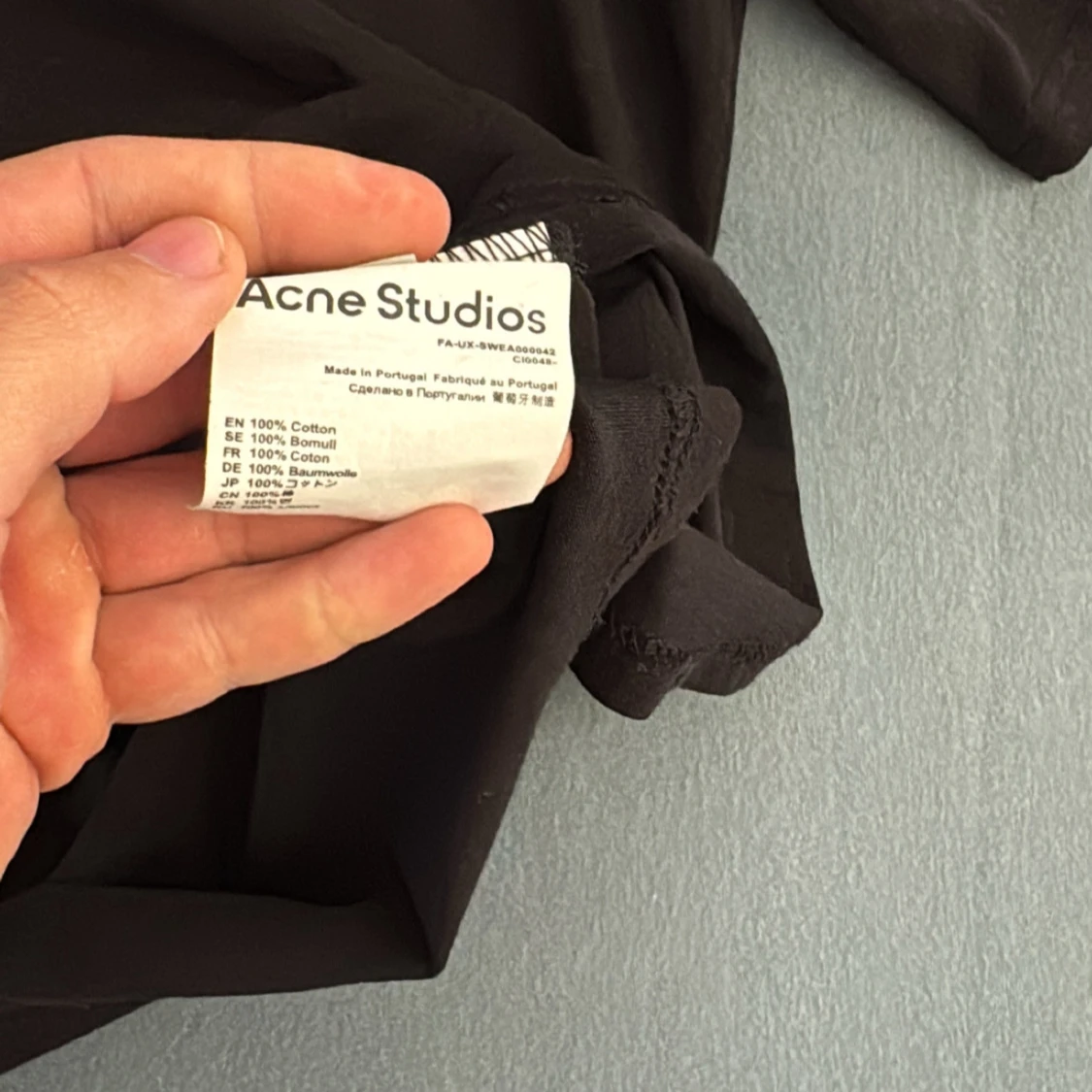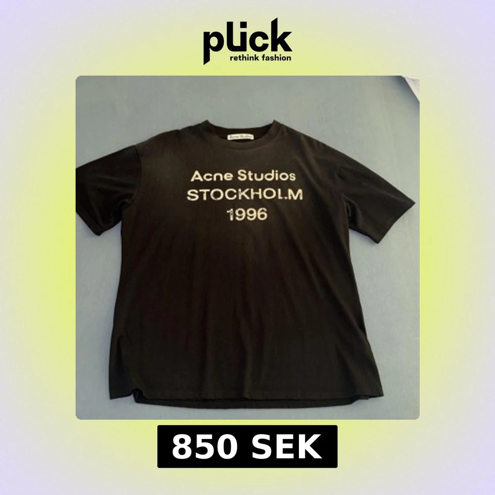Svart t-shirt från Acne Studios med tryck 'Acne Studios STOCKHOLM 1996' på bröstet. Klassisk passform med rund hals och korta ärmar. Tillverkad i 100% ekologisk bomull för en skön och mjuk känsla. Perfekt för en clean och stilren look.