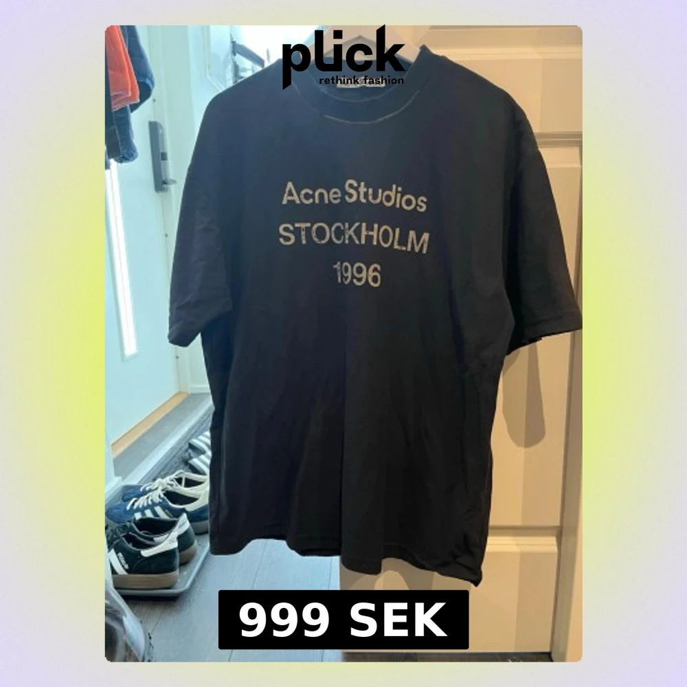 Svart t-shirt från Acne Studios med tryck 'Acne Studios STOCKHOLM 1996' på bröstet. Klassisk passform och rund hals. Perfekt för dig som gillar stilrena och trendiga plagg med streetkänsla.