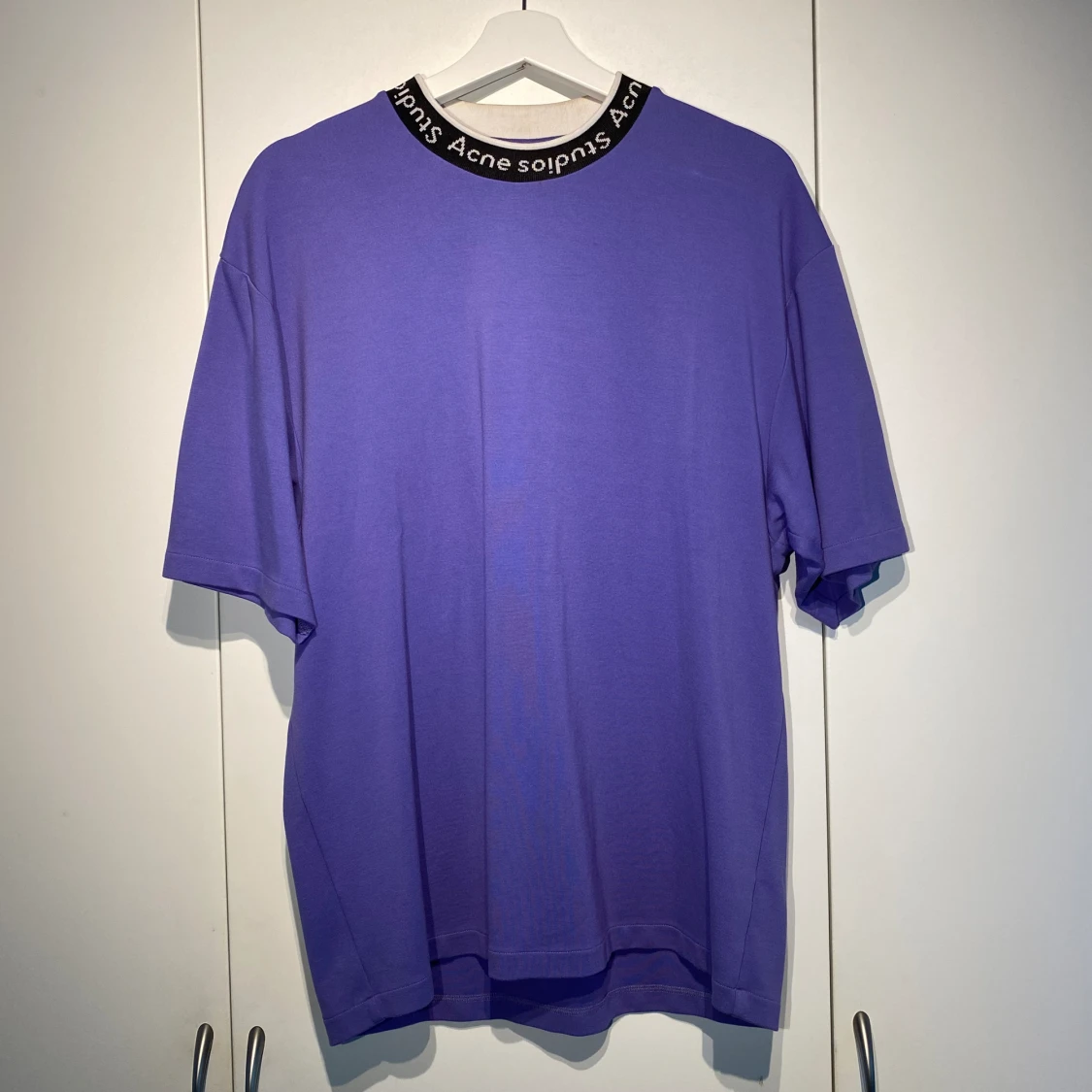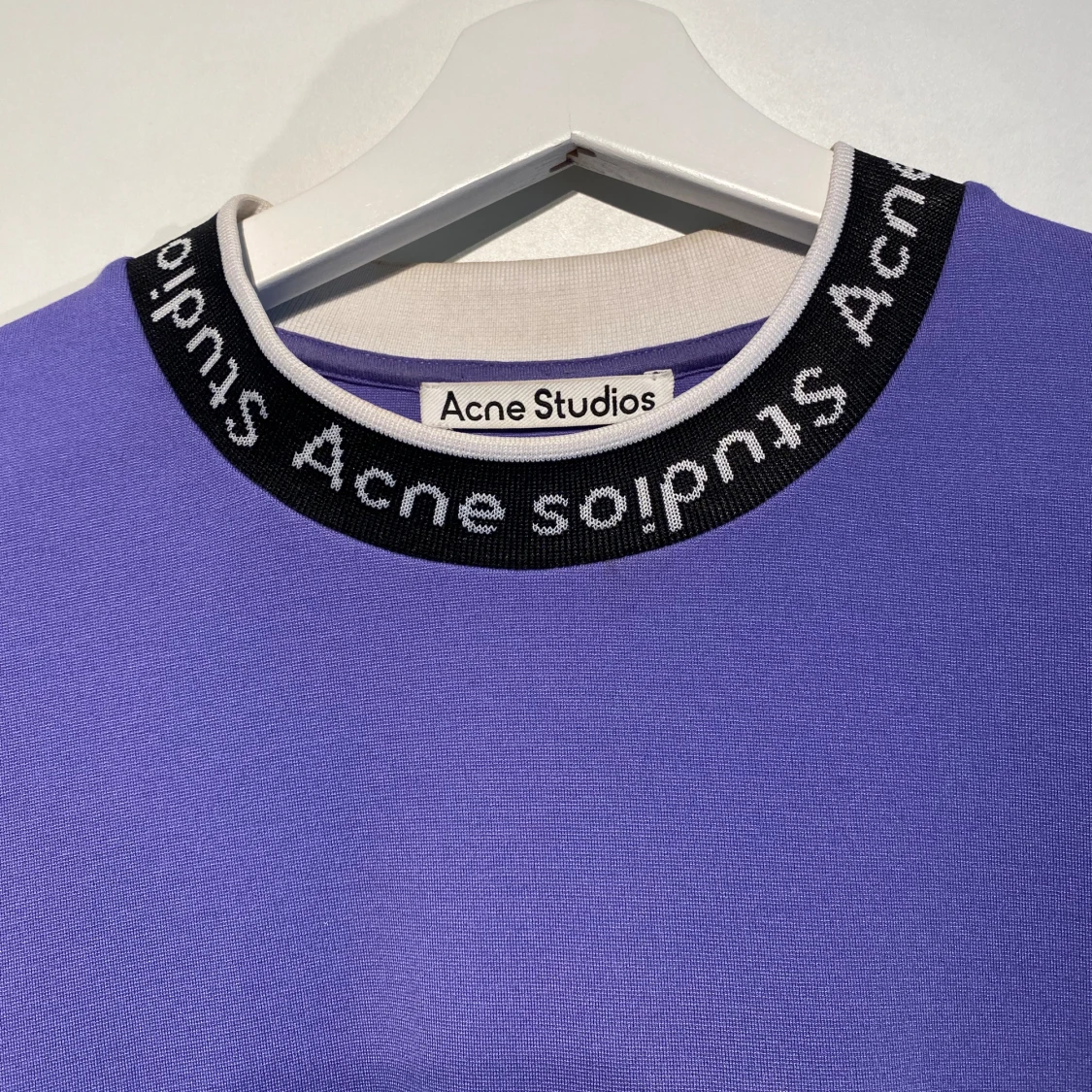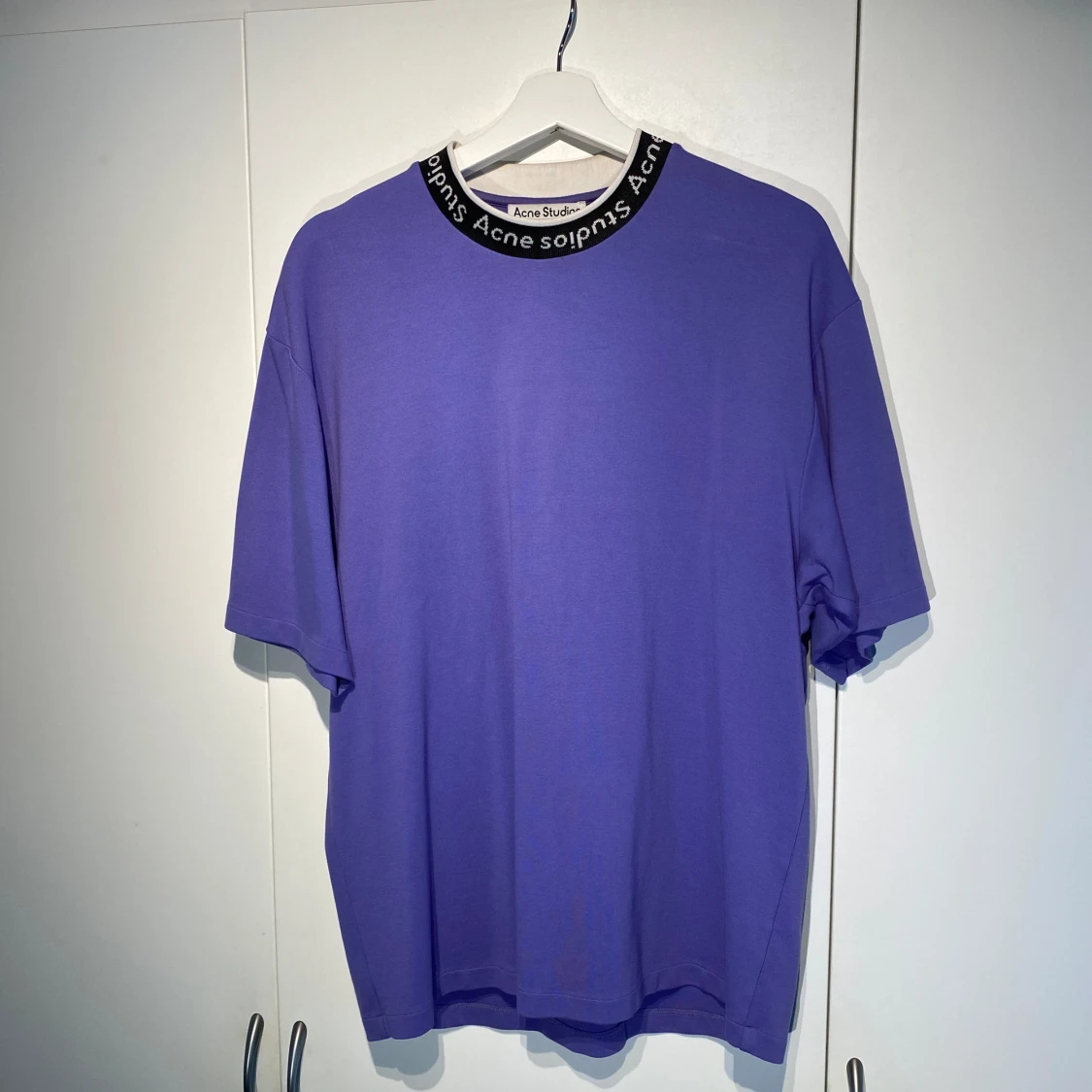 Hej, säljer en sjukt fräsch Acne Studios T-shirt med det klassiska trycket runt halsen i svart/vitt. Snygg unik lila färg som får dig att skicka ut från mängden. Storlek M med oversized passform. Nypris 2500kr. Pris kan diskuteras. Hörs i DM!