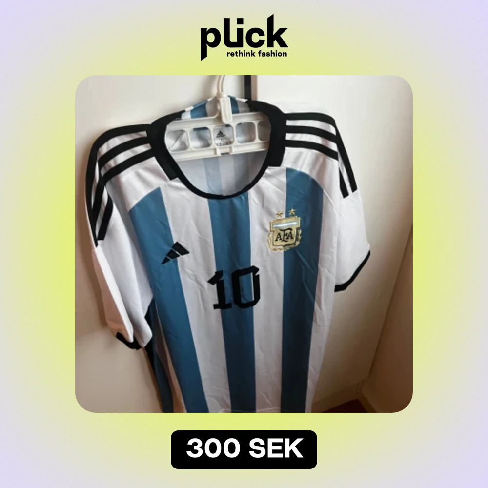 Jag säljer nu dena fina fotbolls tröjan med Messi nummer 10 där bak! Inget fel eller hål i den sicket är 10/10! Storlek är XL men passar ochså L