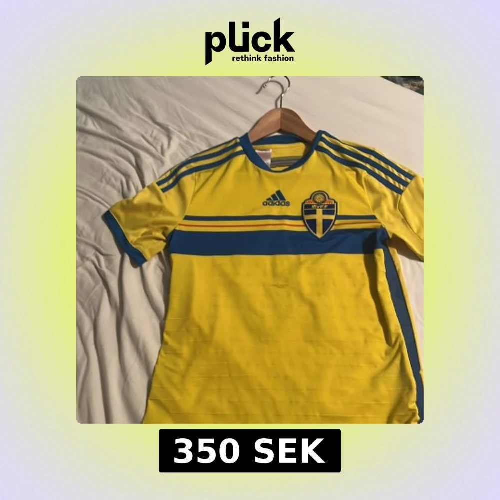Gul och blå fotbollströja från Adidas med Sveriges landslagsmärke på bröstet och klassiska ränder på axlarna. Tryck med Ibrahimovic och nummer 10 på ryggen. Rund hals och korta ärmar, tillverkad i lätt och ventilerande material. Från år 2016