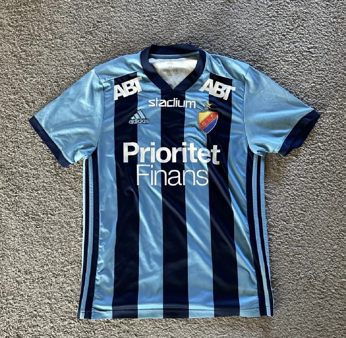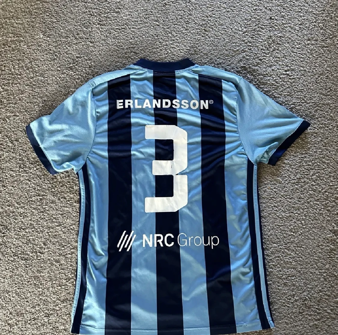 Djurgårdsmatchtröja från 2019. Tröjan är väldigt fräsch och endast visa delar av trycket som börjat spricka. Kond 7/10. Fits TTS. Tveka inte att höra av dig vid frågor eller fler bilder😄🤝