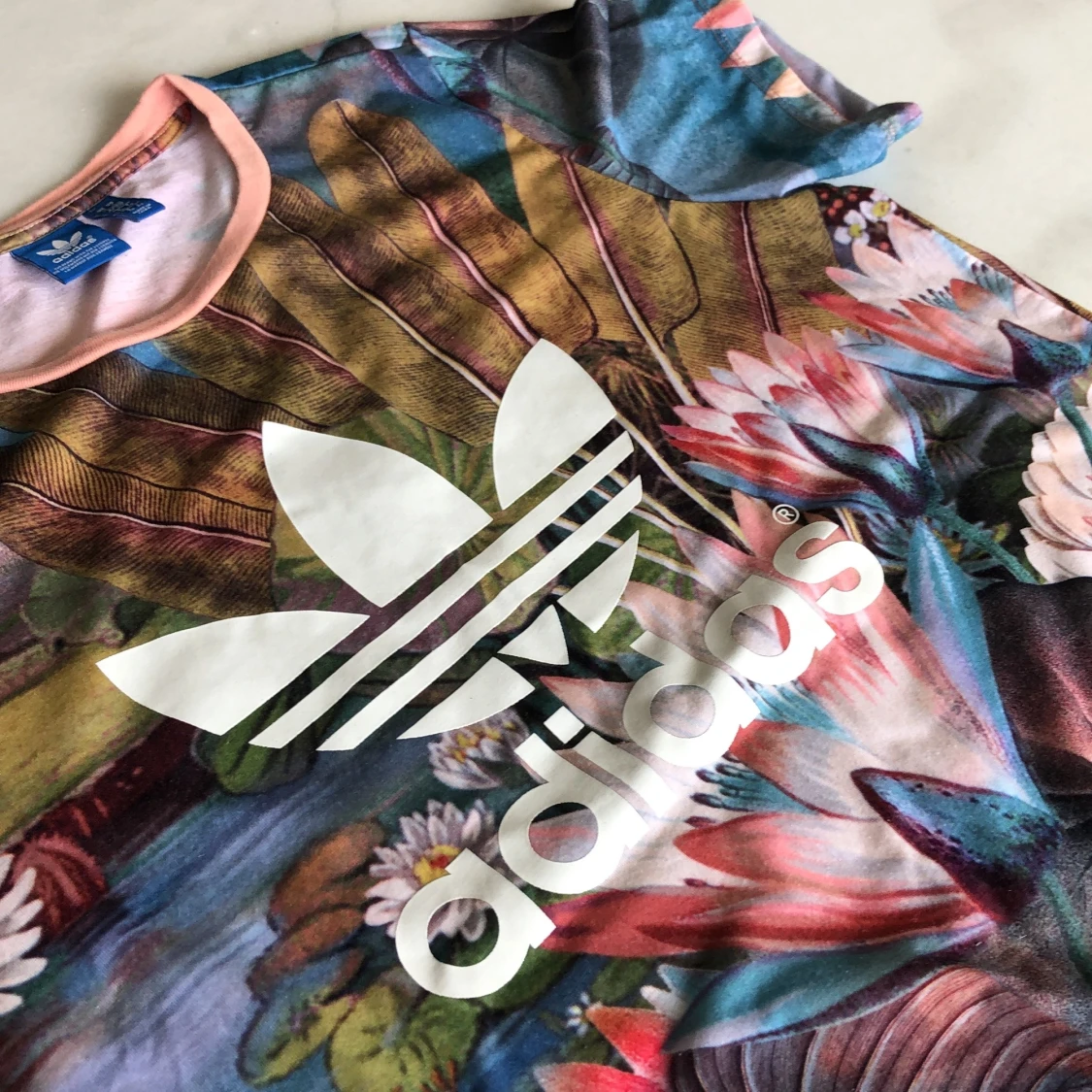 Mönstrad adidas t-shirt i fint skick. Oversize i storleken. Frakten är inkluderad i priset.