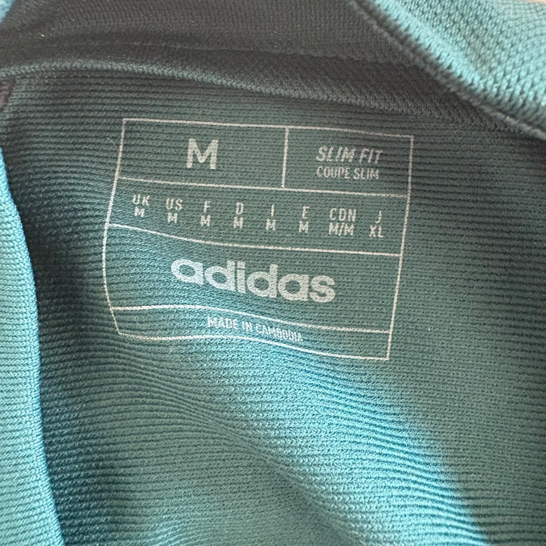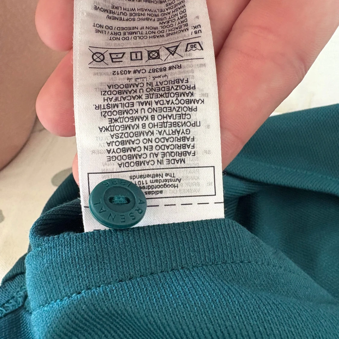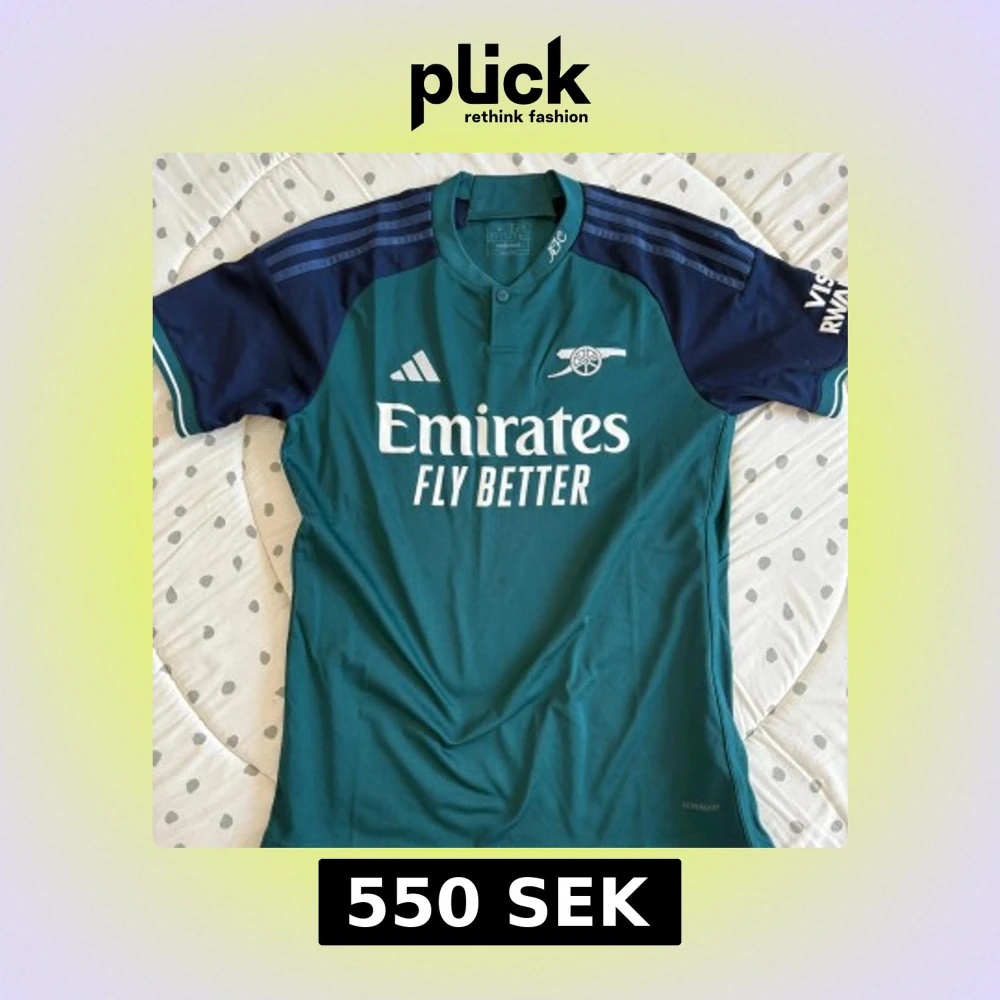 Säljer en Arsenal fotbollströja från Adidas i grönt och mörkblått med vita detaljer. Tröjan har korta ärmar, klubbmärke och sponsortryck på bröstet. Perfekt för fotbollsfans! Tredjeställer 24/25 intill helt ny använd fåtal gånger. Storlek M