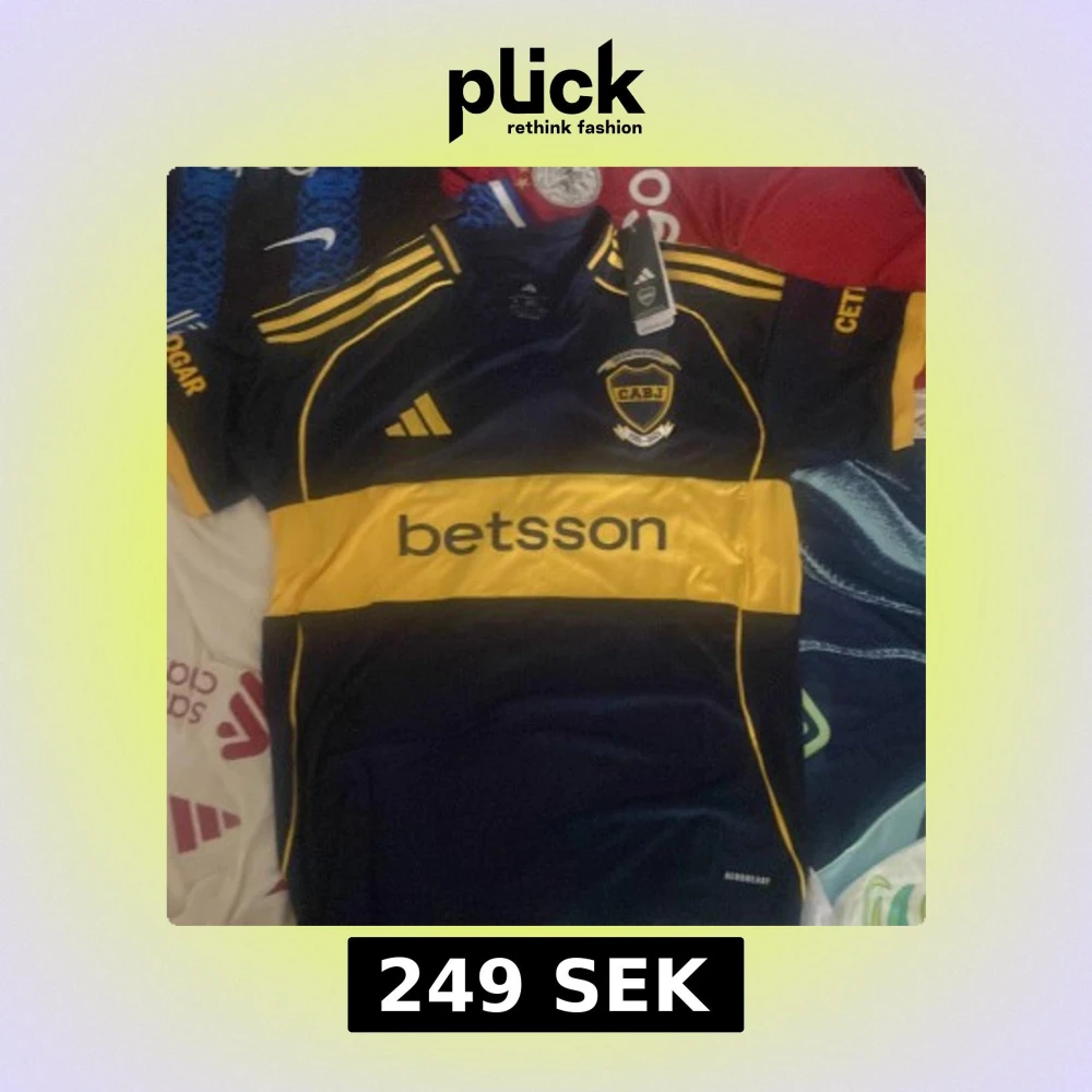 Säljer en Boca Juniors fotbollströja från Adidas med klassisk bred gul rand över bröstet och ryggen. Tröjan är marinblå med gula detaljer och logga på bröstet, samt sponsorer tryckta fram och bak. Tillverkad i lätt och ventilerande polyester med korta ärmar.