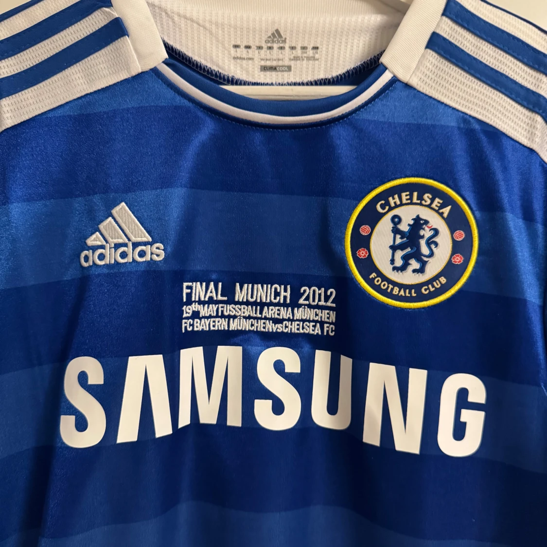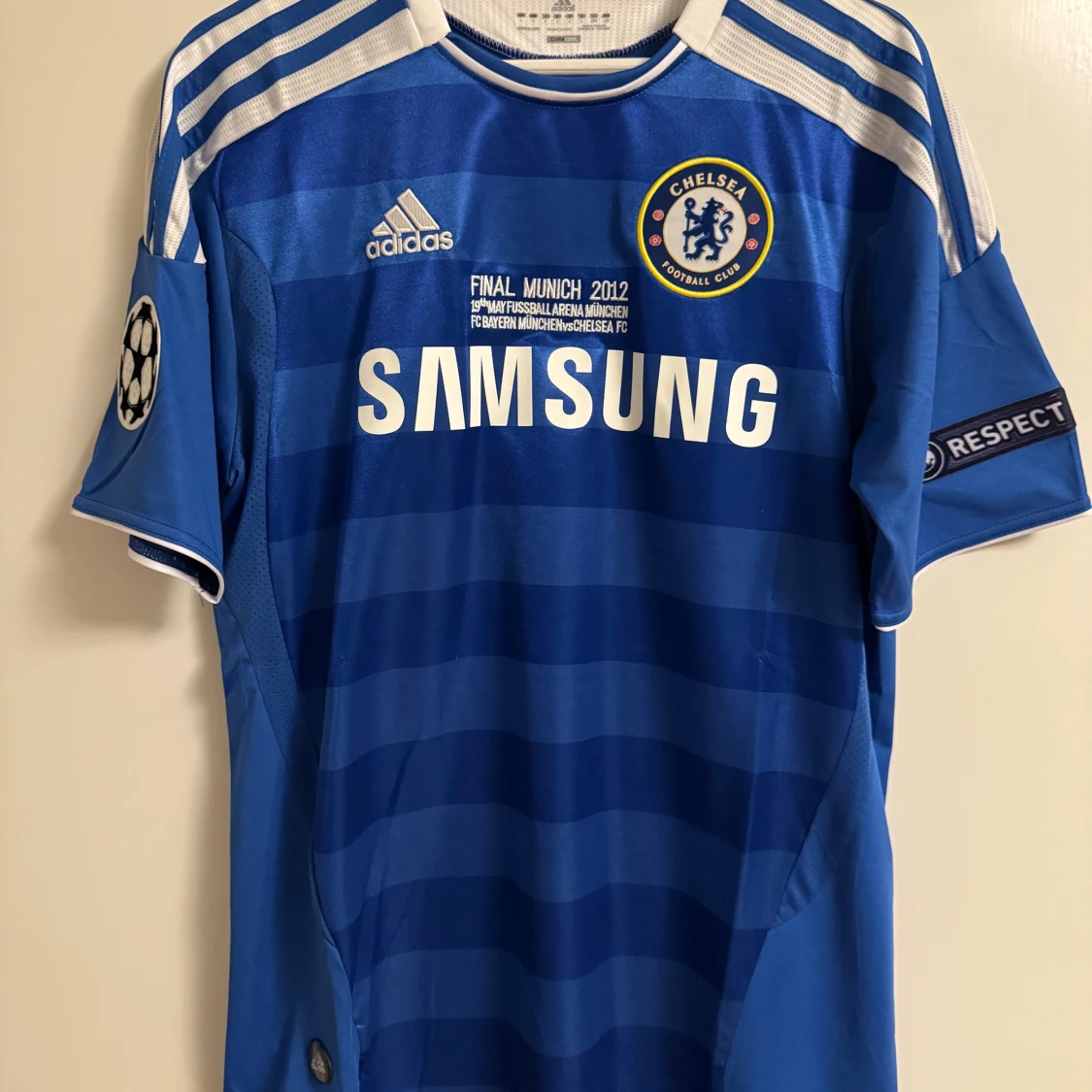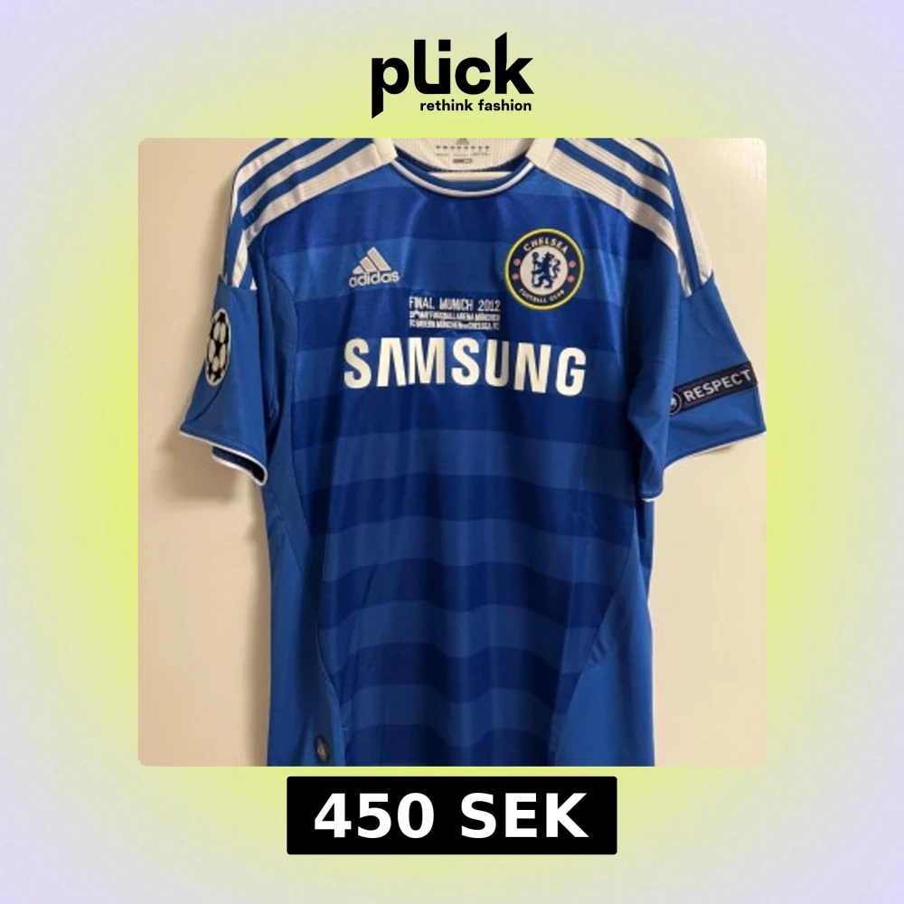 Lag och säsong: Chelsea hemmatröja 2011/2012 - UCL Final 2012 Special edition Namn: Inget Storlek: L Skick: Oanvänd med lapp kvar. Reprint