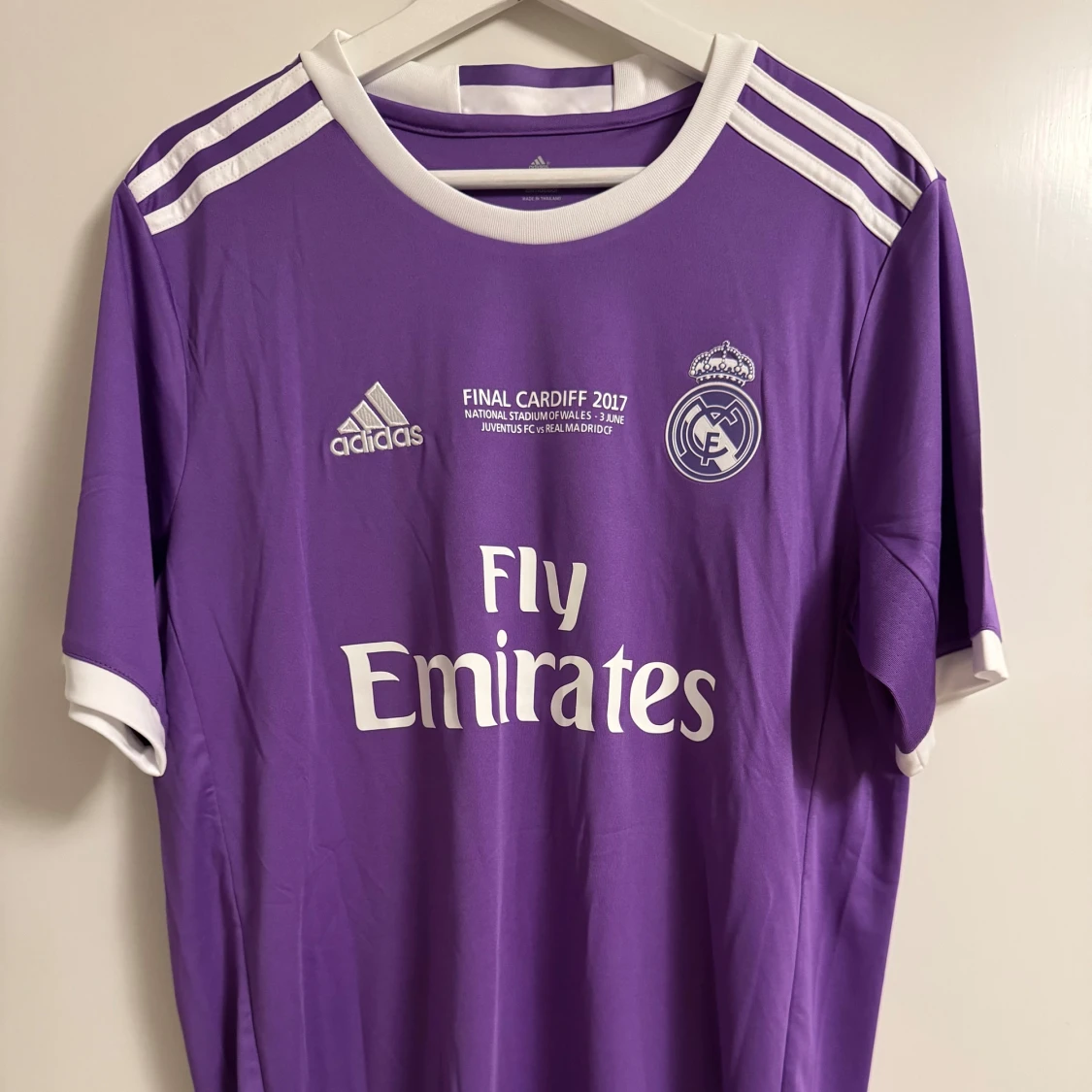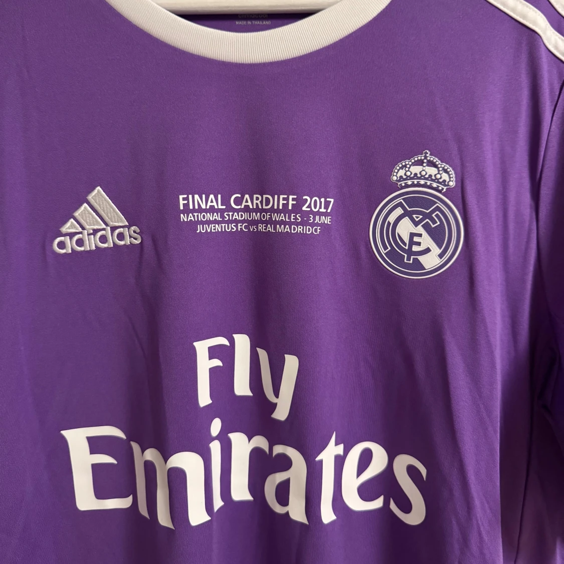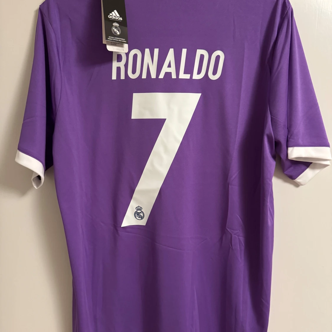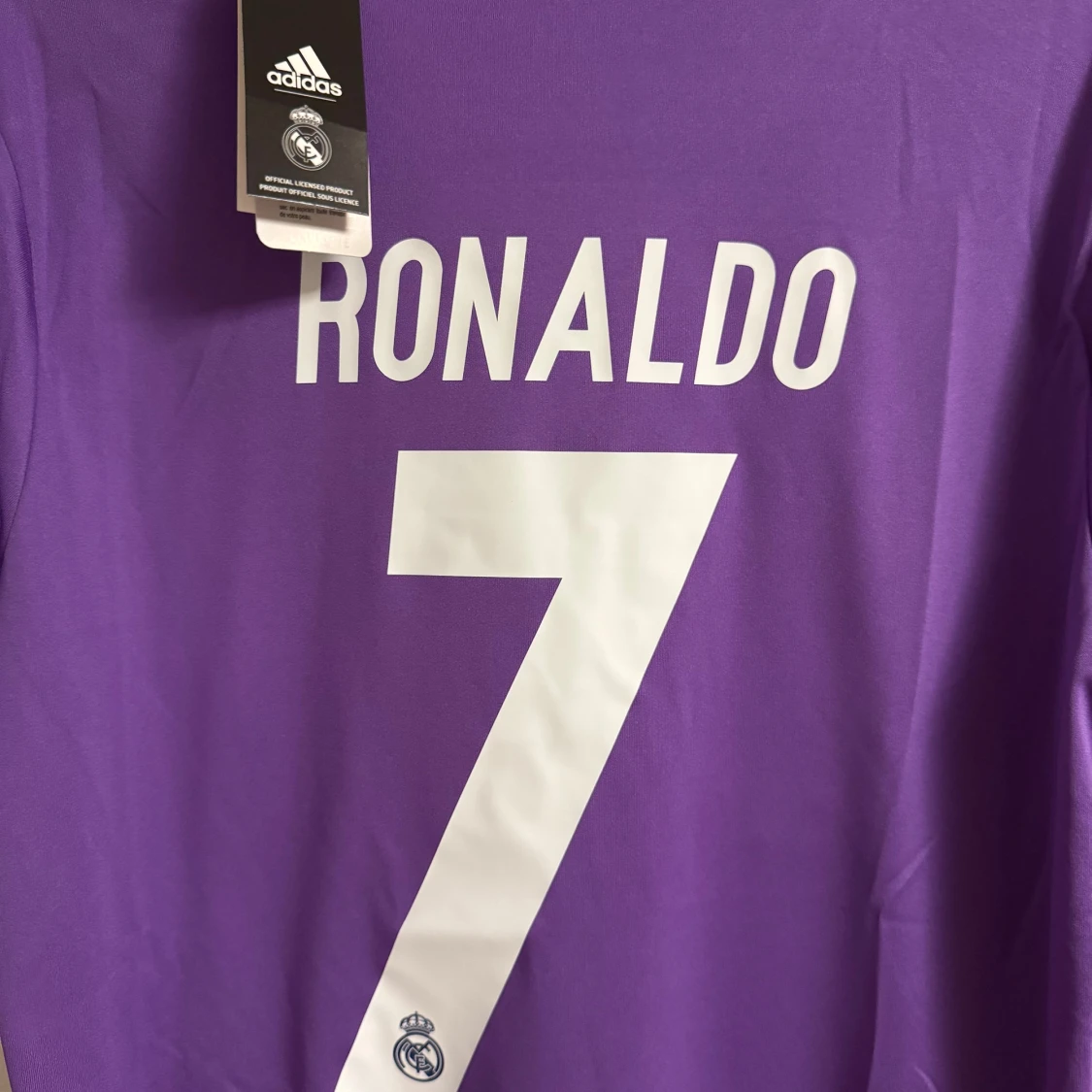 Lag och säsong: Real Madrid UCL Final 2016/2017 Namn: Ronaldo #7 Storlek: L Skick: Oanvänd med lapp kvar. Reprint