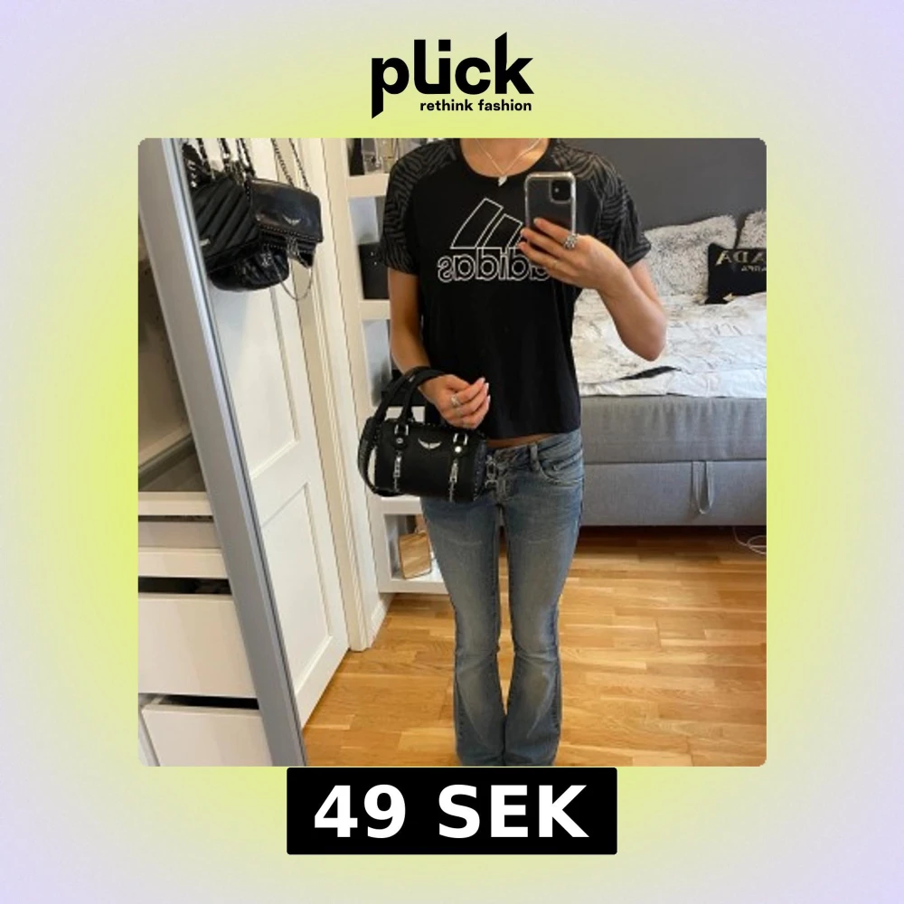 Svart tränings t-shirt från Adidas med stor logga på framsidan . Ärmarna har grått mönster. Perfekt för träning. Står storlek (14-15) år/170 och passar XS/S.