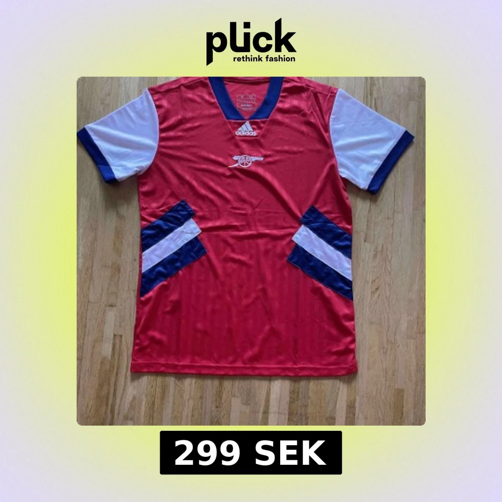Snygg Arsenal fotbollströja från Adidas i rött med vita och marinblå detaljer. Kortärmad med V-ringad krage och klubbens klassiska kanonlogga på bröstet. Tillverkad i lätt och ventilerande polyester, perfekt för match eller träning.