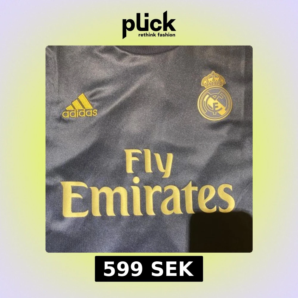 Snygg Real Madrid bortatröja från Adidas i mörkgrått med guldiga detaljer och tryck. Tröjan har klassisk passform, korta ärmar och är tillverkad i lätt och ventilerande Climalite-material. Perfekt för dig som vill sticka ut på planen eller läktaren.