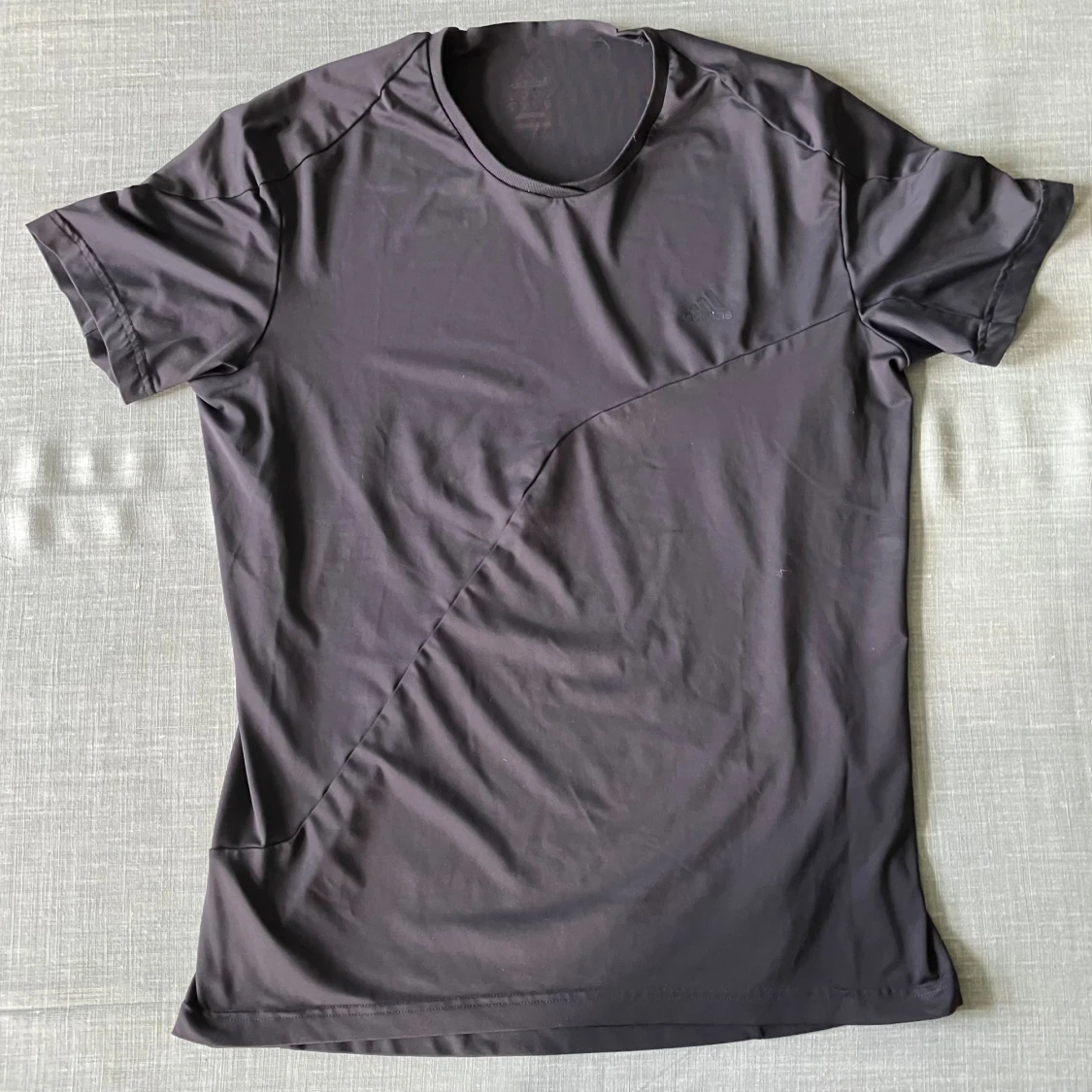Snygg svart tränings t-shirt från Adidas med diskret logga på bröstet. T-shirten har korta ärmar, rund halsringning och är tillverkad i ett mjukt och lätt polyestermaterial. Perfekt för dig som gillar en stilren och sportig look.