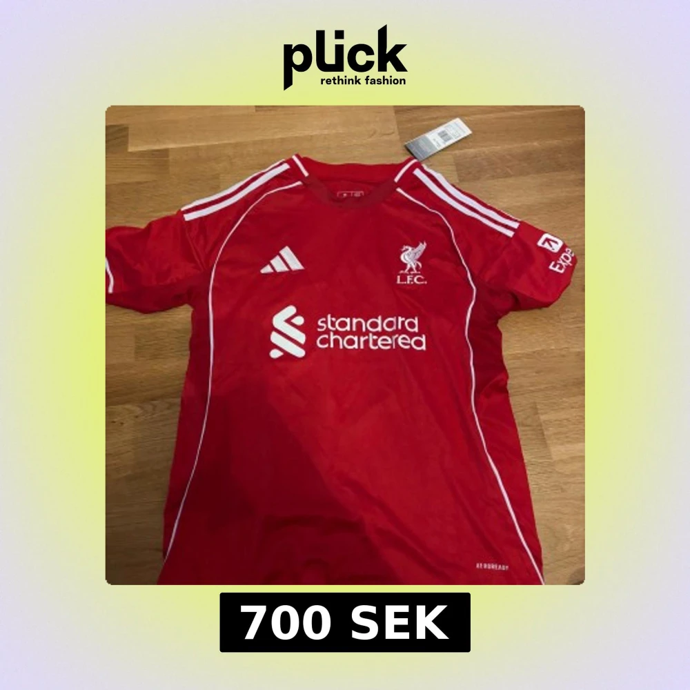Liverpool FC matchtröja från Adidas i röd färg med vita detaljer och tryck. Klassisk rund hals, korta ärmar och ventilerande Aeroready-material. Snygga vita ränder på axlarna och klubbmärke broderat på bröstet. Perfekt för dig som vill visa ditt stöd för LFC. Den är även helt oanvänd.