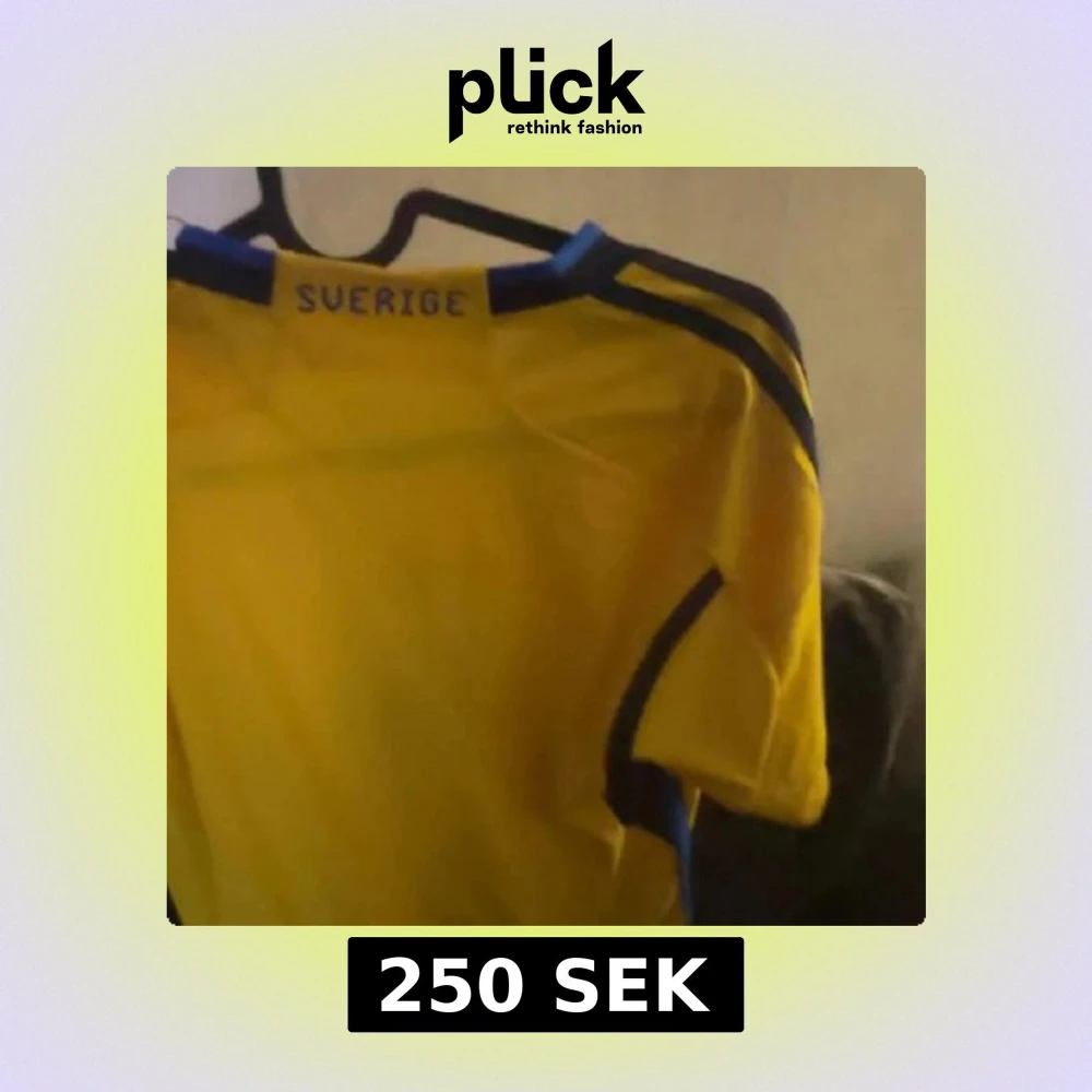 Gul fotbollströja från Adidas med blå detaljer och Sveriges landslagsemblem på bröstet. Tröjan har korta ärmar, klassiska Adidas-ränder på axlarna och texten 'Sverige' i nacken. Perfekt för dig som vill visa ditt stöd för landslaget.