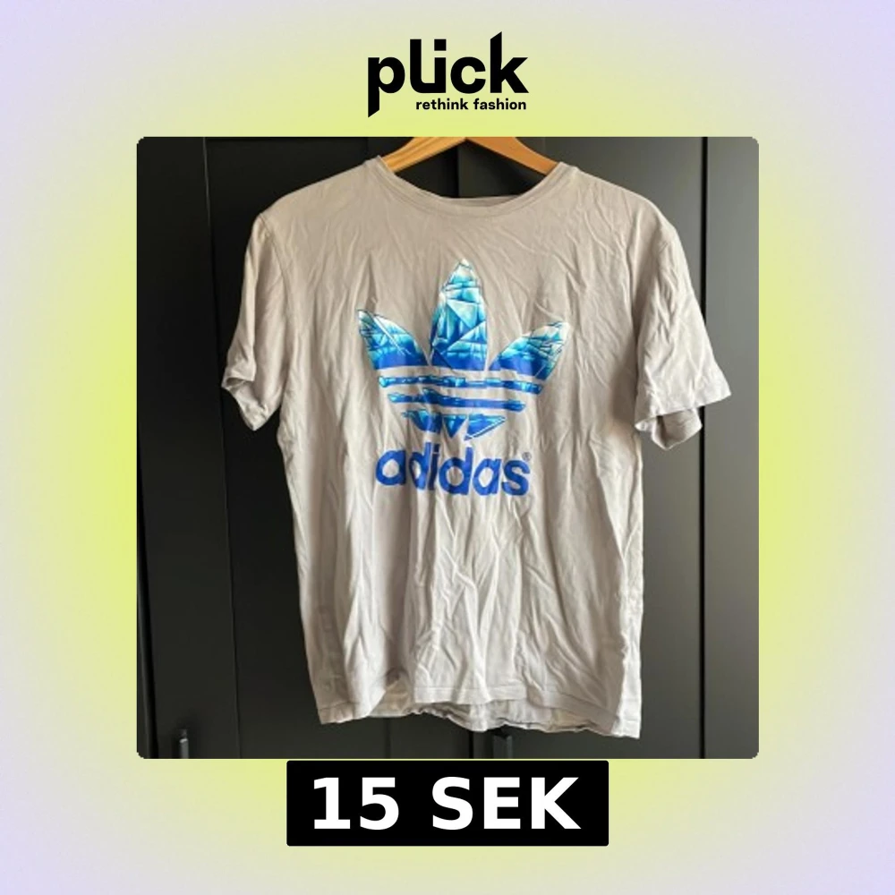 Snygg grå t-shirt från Adidas med stor blå glansig logga framtill. Klassisk rund hals och korta ärmar. Perfekt för dig som gillar sportig och avslappnad stil.