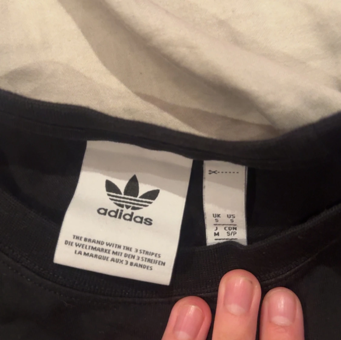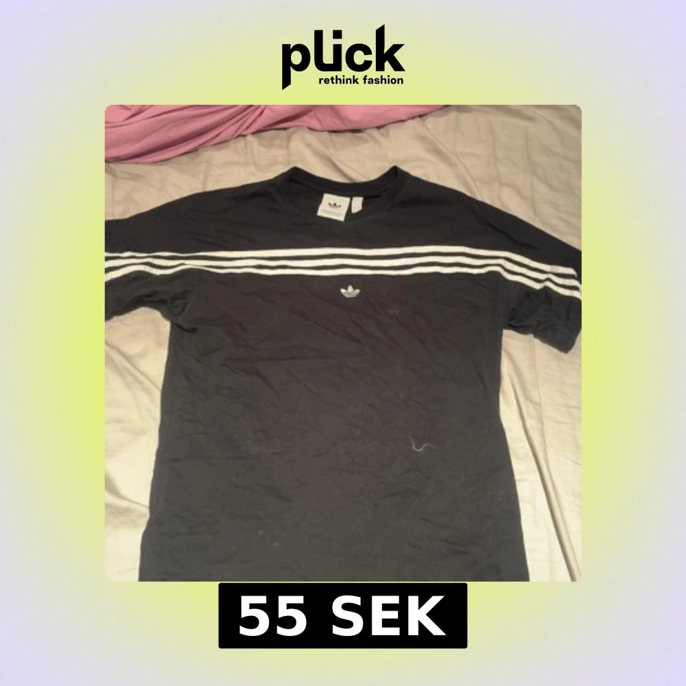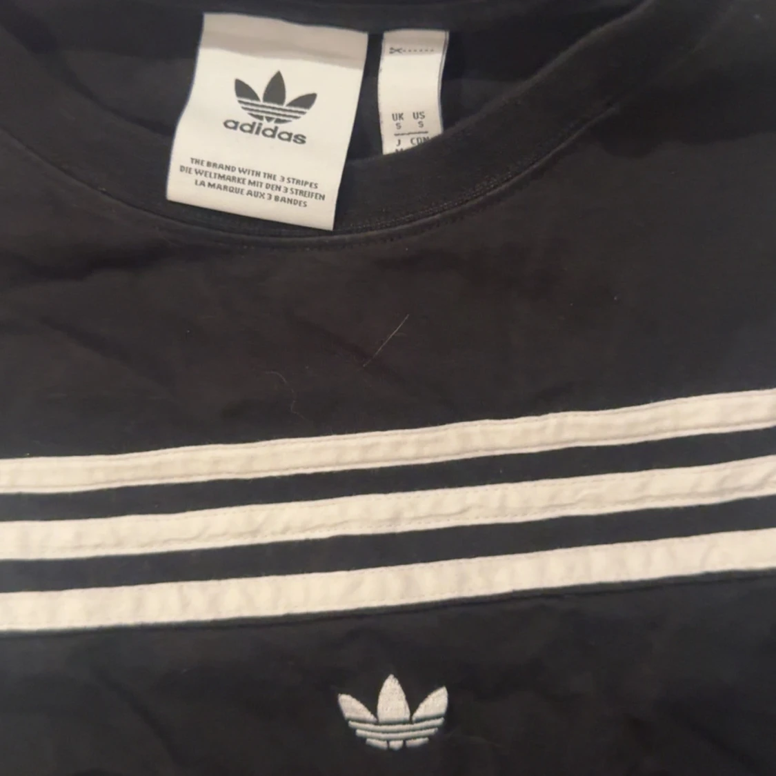 Svart t-shirt från Adidas med klassiska tre vita ränder över bröstet och broderad Adidas-logga framtill. Rund hals och korta ärmar. Perfekt för dig som gillar sportig och clean stil.