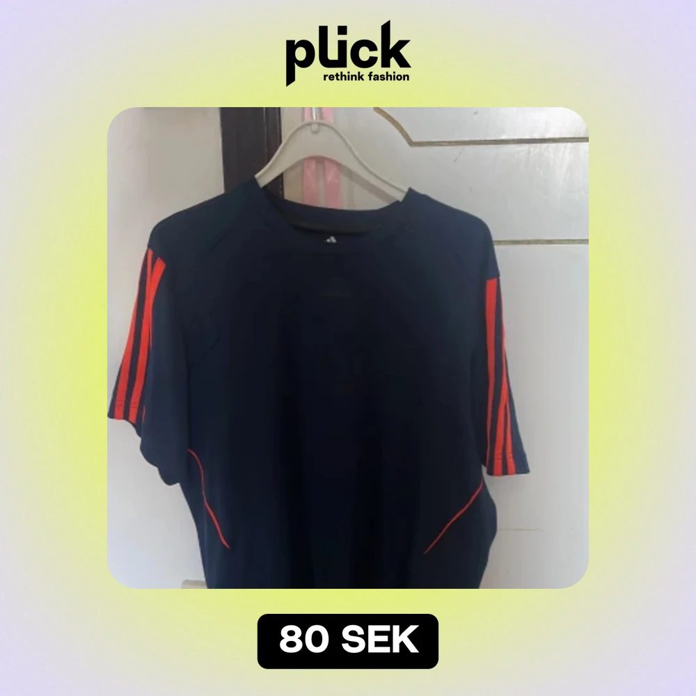 Mörkblå adidas t-shirt. Loggan på framsidan är nästan borta, men annars är tröjan i bra skick.