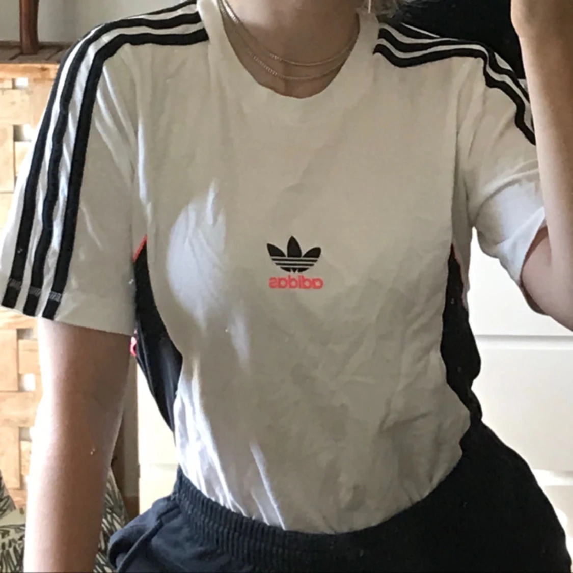 Svinfin adidastshirt med rosa detaljer köpt på footlocker. Nästan helt oanvänd och ser ut som ny.
