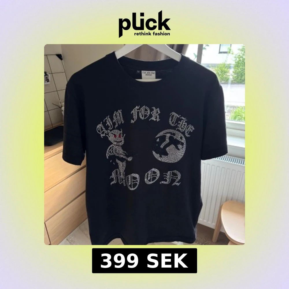 Svart t-shirt från Aim For The Moon i bomull med kort ärm. Framsidan har ett coolt tryck. Skön passform och perfekt för dig som vill sticka ut !